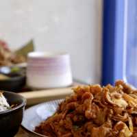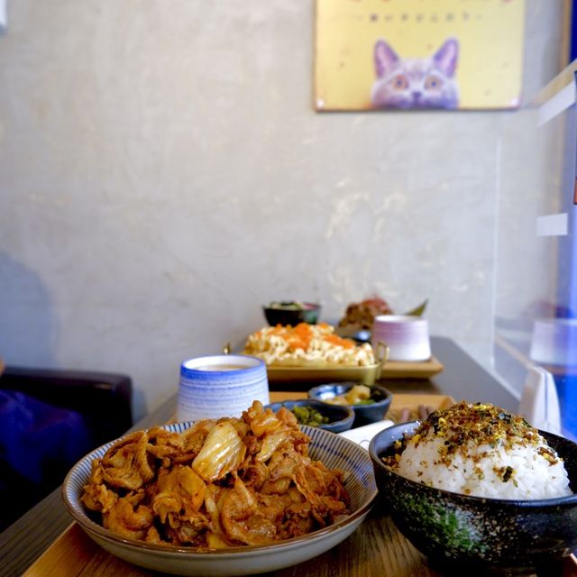 Today I went to Tsuen Wan Promenade and wanted to walk along the Tsing Tsuen footbridge to see the scenery and have a meal nearby. Location: Near Exit D of Tsuen Wan West MTR Station, about a fifteen-minute walk to Promenade Gardens. Environment: The restaurant has a blue facade with a bench for customers to sit while waiting for a table. The interior is small, with concrete walls and a wooden counter. There's a cash register directly in front of the door. To the left is a floor-to-ceiling window, which doesn't offer much of a view, but does allow for plenty of natural light. Another wall is decorated with large anime characters, and anime figurines are used for decoration throughout. We sat in a corner with a cute cat painted on it. Service: The dining time is limited to 60 minutes. Lunch: Set menus are available. For an additional $8 or $12 on all main courses, you get an appetizer, pickles, miso soup, and a drink. 🥢Gourmet Grilled Beef🥩$52 +🥤Diet Coke$8 + Udon$12 The miso soup was generous👍🏻, with clams and Naruto rolls, adding a touch of umami to the soup. The pickles were pickled vegetables and miso-scallops, which were very appetizing. The beef was fried to perfection😍, and the meat was tender and fragrant. For under a hundred dollars, you can enjoy a high-quality beef set meal—a great value!😘 🥢Kimchi Stir-fried Pork🐷 with Miso Rice $52 + Genmaicha🍵$8 It wasn't as fragrant or tender as the beef, but the kimchi stir-fried pork was flavorful and less spicy. The portion was equally generous. The Genmaicha was also generous, with plenty of rice grains and a very rich flavor! 🍟Mentaiko Fries $38 The portion was generous, fried to a crispy texture, and the sauce was flavorful. Excellent! Moonlight Hall 𝐇𝐚𝐥𝐟 𝐌𝐨𝐨𝐧 📍Shop 108, G/F, Block 22, Hoi Yu Court, Riviera Gardens, 1-5 Yi Lok Street, Tsuen Wan #localtravel #foodie #summerfoodie #hongkongplaces #hotsummerplaces #hkfoodie #tsuenwanfoodie