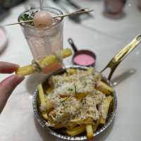 Lady Nara, a Thai restaurant located in Harbor City, Tsim Sha Tsui, finally came to try it😍 It was always crowded when it opened before, this time we chose the time before afternoon tea, and we waited for about 10 minutes to be seated🙂 The restaurant is mainly pink style and rattan chairs, once you enter the restaurant has plenty of lighting, the window can also see the sea view, and there are green plants and rocking rattan chairs to take pictures, the whole feeling is like going on vacation 🥰 We ordered the lunch set, which includes starter main course and drinks, the price is only a hundred heads per person, this price can eat high quality food with sea view, no wonder so many people have been coming to eat👀 Snacks➡️Chicken skewers, green papaya salad, black truffle fries with tom yum soup🥣 The three skewers of chicken skewers are quickly cleared by the children. The best thing is that they are tender enough. The tom yum soup is evenly sour and spicy, which is good. Black truffle fries with pink mayonnaise is very characteristic😋 Thai Pork Stir-fried Phnom Penh Noodles🍜 Phnom Penh noodles are fried dry enough, with peanuts, chili powder and sugar together to eat enough authentic, pork selected large pieces of soft parts, plenty of portion 👍🏻 Lemongrass grilled chicken chop with rice🐤 The chicken steak is a surprise, the skin is crispy and crispy, it has a slight honey flavor, the entrance is very tender, with the special Thai spicy sauce, it is the best chicken steak rice I have ever eaten🤤 Finally, I would like to recommend the rose Thai milk tea. The Thai milk tea with roses can neutralize the sweetness of the condensed milk. It's good! Lady Nara Address: Shop 3303, 3/F, Harbor City Harbor Plaza, 3-27 Guangdong Road, Tsim Sha Tsui #Thai Restaurant Tsim Sha Tsui #Photo-Photo Restaurant #Hong Kong Restaurant Recommendation #Camera Eat First