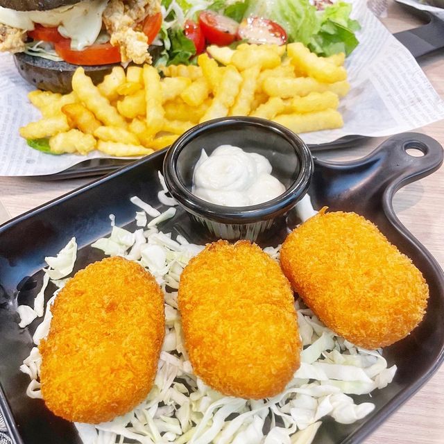 Women's Street 🎊 has opened a new 🤩 high quality 🍔 burger shop, its price 💰 friendly, full portion 👍, good quality, especially its bamboo charcoal burger 🤤. Inside🍴 the shop is small, the decoration is simple and fresh🥰. Bamboo Charcoal Double Layer 🍔 Beef Burger $108, the burger contains two large pieces of 🤩 very juicy beef 🐂 burger steak, in addition to 🥓 bacon, 🧀 cheese, 🍳 omelet, 🍅 tomato, 🥬 lettuce and 😍 thousand island sauce, very rich. The beef 🐂burger steak is large and thick 🥰, about 70% cooked and very tender 😋, the bamboo charcoal bun is firm and chewy, the restaurant 🍴 can also help us cut 🔪 share to eat, in addition, there are gloves 🧤 provided, very courteous ❤️. Bamboo charcoal 🦀 soft shell crab 🥑 avocado sauce 🍔 burger $108, also big 🤩 very attractive. It contains 🔥fried soft shell crab🦀, cheese🧀, tomato🍅, avocado sauce🥑 and flying fish seeds😍, the bite is very layered👍, the ingredients are fresh and delicious🤤. The 🍔burger meal comes with 🍟 french fries and 🥗 salad vegetables, the portion is plentiful 🤩, the coarse fries 🍟 are very crispy, the salad vegetables 🥗 with sesame sauce fresh and refreshing 😋. They have a variety of soda specialties 🍹, and you can add 🥥 coconut, popcorn Or aloe vera, we chose 🍇 Jumbo Grape Soda with Mango 🥭 Popcorn and Ribena Soda with 🥥 Coconut. In addition, they also have different 🔥 snacks available, this cream 🦀 crab meat fries $ 58 for 3 pieces, cream is very smooth in the middle has a faint 🦀 crab meat freshness is very good 🥰. High Castle Address: Shop K1-K3, G/F, Hong Guang Building, 2A-2P Tong Chai Street, Mong Kok #highcastle #highcastle #women's street #Mong Kok #Tong Chai Street #women's street food #Mong Kok food #high quality burger shop #burger shop #burger #beef burger #bacon #cheese #omelet #tomato #lettuce #bamboo charcoal bun #soft shell crab #avocado sauce #avocado #fries #french fries #salad #salad #sesame sauce #jumbo raisin soda #ribena #cream crabmeat fries #crabmeat