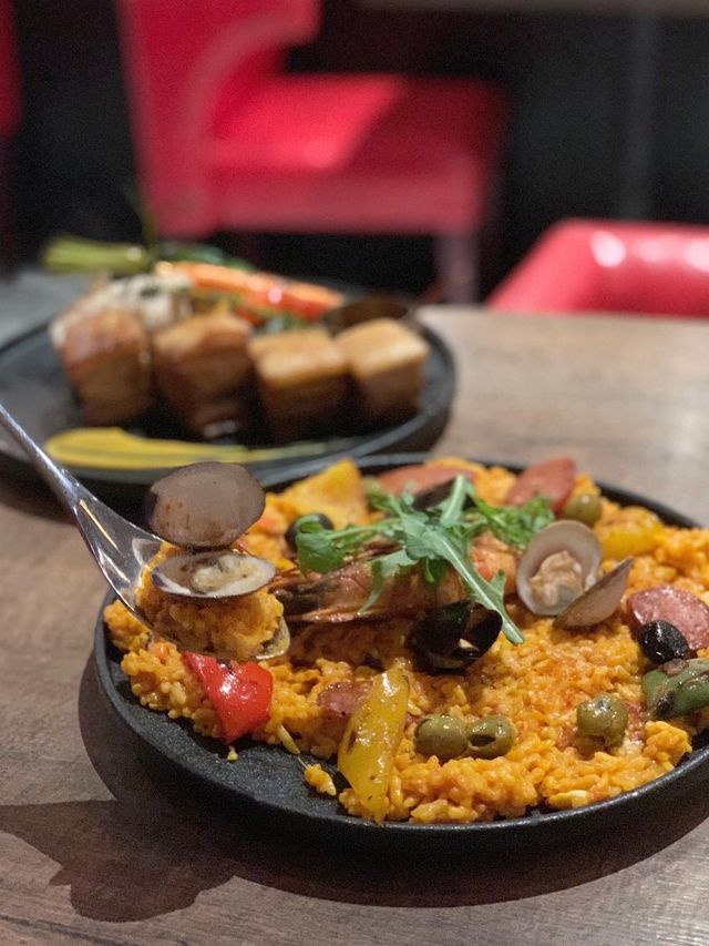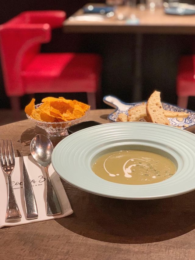 🎏️ Eat all in Tsim Sha Tsui — Cocina3✨ Spanish restaurant full of style 🇪🇸🍹😌 #localtour #foodie #HongKonggoodplaces #90cp Olympics #90cp Spain ➖➖➖➖➖ I remember the last time I ate Spanish food was in Prince Edward Station 🤣 It was to regain the feeling of going to Spain before the epidemic, the most wanted to eat is Spanish seafood rice 🦐 After so long and aroused my addiction, I discovered that the Olympic Station is available to eat 😤 Of course can not miss !! Deliciousness Index 😋: ⭐️⭐️⭐️ Environmental Index 🏖: ⭐️⭐️⭐️⭐️ Service attitude 👨🏼‍🍳: ⭐️⭐️⭐️⭐️ Flip Index 💫: ⭐️⭐️ (Five stars is a full score 💯) ✨Selected Package $688✨ 🍳 Creamy egg black hair ham 🥘Spanish Seafood Rice 🐷 Grilled black pork loin with orange juice 🍰 Selected desserts 🍟 Nachos $45 Once inside, the environment is already divided, quite Spanish-feeling European architectural style, especially festivals with friends or family must have a special flavor🤤 I came to order a selected meal for two, should be considered the most affordable appetizer, soup, cooking and dessert🤫 Appetizer ordered this melted egg is a bit surprising, but there is some cheese paired with black no ham salty taste I was unexpectedly chopped🥳4 (Remember this is not free🙈) As an appetizer both is enough!! Come to the main course, of course, try his Spanish rice😏 The portion of seafood is not too much, the sides are fried to grains, the overall taste is not too heavy, personally think it's good, so of course the Spanish ones are even better 🇪🇸😂 Instead, I appreciate his pork belly, because it's just a bite of meat, seasoned with a little sourness of orange juice, it's not greasy!! Instead, the selected desserts are more discolored 🙈 not too suitable for personal taste, Waffle's taste is more lup and not too refreshing 🧇 and the popular eat will be a little different, personally think the popular Japanese waffle is better! 💰Total: $807 ✅ The overall atmosphere and the quality of the food are not bad, eating Spanish food can be a battle😌 ❌Of course it's not as authentic as Spain🙈 ➖➖➖➖➖ 📍 Cocina 3 Tapas Restaurant & Bar (Tai Kok Tsui) Shop G22, G/F, Ocean Point Phase 3, 1 Hai Wong Road, Tai Kok Tsui