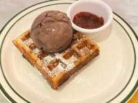 I've eaten at other branches before afternoon tea, I thought it was quite good and I remember all the ingredients in the restaurant are fresh and homemade, pancake has no flour variety, so the impression is quite high quality😬😬 I was walking in Causeway Bay and saw that the dinner set was not too expensive, so I tried it🤤🤤 Dinner special 5courses are $228 It includes starters, side dishes, main dishes, desserts and drinks 🍽 Blue Mussels (+$48) The taste is fresh and sweet with a little seawater flavor, the sauce has a faint cheese flavor😜 🍽French fries with skin It's coarse fries, bites of potatoes🤭 🍽 Red Wine Braised Lamb Knee with Black Truffle Mashed Potatoes (+$30) The portion is super large, the meat is cooked well, the entrance is soft and smooth, the seasoning is just right, I can't eat the lamb taste at all😝😝 The mashed potatoes are amazing. They are smooth and have a very fragrant black truffle flavor😗 🍽Strawberry rhubarb waffle with your choice of ice cream The waffles here have a strong egg flavor, and are crispy in the mouth. They are already delicious with a little sweet and sour sauce or ice cream😆 In addition to ordering iced lemon tea with the meal, I also ordered a cup of dragon juice ($57). The juice is freshly squeezed without added sugar, so it tastes really refreshing😋 Both meals and desserts are good here 👍🏼 📍Green Waffle Diner, Causeway Bay #waffle #causewaybay #hysan #hysanplace #food #foodiehk #foodincwb #cwb #causeway Bayfood #causeway Bay #waffles #dessert #foodie #hongkonggoodplaces
