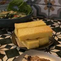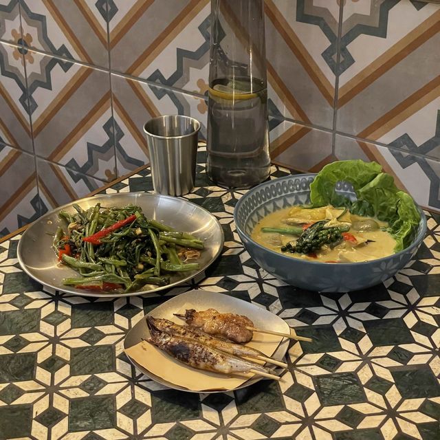 A Thai-Japanese fusion restaurant has recently opened near the Heung Che Street Market in Tsuen Wan. The restaurant is decorated in a nostalgic industrial fashion style. In addition to Thai cuisine, the restaurant also serves Japanese skewers, which is quite special. 🍞Gold Brick Garlic Bun $28 The garlic buns are made upon order. The bread should be soaked in butter and garlic before frying. The outer layer is very crispy, and the inside is soft and fluffy. The butter flavor is very strong, and the butter will flow out when you eat it hot. The seemingly ordinary garlic buns are unexpectedly delicious, so delicious that you have to encore an extra portion. I sincerely recommend it! 🍛Thai Green Curry Chicken $88 There are about 8-10 pieces of chicken, and the curry has a stronger spice flavor. It tastes even better when paired with garlic buns! 🥬Thai style stir-fried water spinach $78 The water spinach is also stir-fried with a hint of wok flavor, but the portion is smaller. 🐟Capelin skewers $28 There are 2 capels in one serving, and they are cooked very flavorfully. 🐖Thai pork skewers $28 The pork meat is served in a skewer, which is a small portion, but the meat is thick and tasty. 💯Food index: ❤️❤️❤️❤️ 📍Address: G/F, 5 Caogongfang, Tsuen Wan #foodiehk #foodie #Tsuen Wan cuisine #Thai food #Japanese food