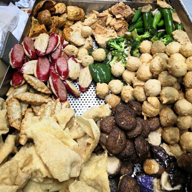 Every time I pass by Tai Wai Station, I will be attracted by "Tai Wai Snacks". They reportedly have a long history of operating from 1998 to now. They have a variety of classic Hong Kong traditional street snacks and their own factory. The first must-try "Secret Spicy Pork Skin and Carrot Fish Balls" Chan Pee fishballs are small and bouncy, the pork skin is crispy and not too soft, the carrots are very seasoned, and the secret spicy sauce is super tasty, unbeatable. "Fried three treasures" 20 dollars 5 pieces, large pieces, size equal to outside 2 times the size, super affordable, and will not shrink, surprise choice "broccoli stuffed fish meat", other combinations are normally generally available. "Leek Pork Red Pork Intestine Carrot" The portion of leek is just right, the pork red bean is slightly small and smooth, the pork intestine is smoky and refreshing, and the carrot is sweet and fragrant. The preparation of "stinky tofu" is authentic ancient method, the outer layer is thick and chewy, the portion is very large, the entrance slightly brings out the fragrance of stinky tofu, rich bean flavor, plus sweet sauce and spicy sauce more delicious. "Full glutinous rice" The rice is smoky, well-defined, slightly sticky, refreshing and soft. The glutinous rice absorbs the essence of the pork belly, the pork belly is full of salty flavor, the pork belly is not too fatty, and is moderately fat and lean. The ingredients include minced pork, peanuts, shrimp, mushrooms, spring onions, rice flavor is full of layers, oil fragrance is overflowing, there will be no greasy feeling. The skewers bought "pork, chicken and squid" The pork is very thick and has a pork flavor. The chicken is smooth, not too dry and juicy. The whole squid is smooth and chewy, and is even more delicious after grilling. #foodie #HongKongfood #hkfoodblogger