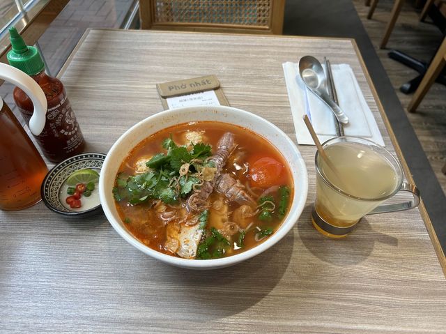 Pho Nhat Vietnamese Restaurant is truly Vietnamese Style in its foods, drinks, and decoration. I came for lunch at the restaurant on Electric Road North Point, and I had Pomato Mantis shrimp vermicelli paired with a Vietnamese hot ginger drink as a lunch set. The restaurant atmosphere is very Vietnam too, as you can eat while listening to the Vietnamese songs played and find the hat-styled lamp cover around. The foods are tasty and good value as the portions are significant. The price for a lunch set is less than HK.100 per person. #vietnamesecuisine #food #restaurant