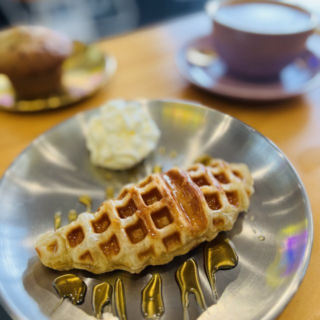Aloha | Tai Wai Small business, carefully made ❤️ like to buy from small shops 😇 I've been wanting to eat croissant waffles for a long time. I saw a newly opened coffee shop and came in to try it! The croissant waffle is very delicious, the love crispy lining curled up with the fresh cream, the taste is excellent😋 Also add a breakfast, turkey meat scrambled eggs and fresh salad vegetables, meal package 👍🏻👍🏻 Coming to the coffee shop of course to order coffee, today ordered a cup of latte ☕️ morning drink a cup of coffee refreshing, more fragrant and smooth worth a try 👍🏻 It's Halloween, the shop environment has added some Halloween decorations, the atmosphere is very good 🎃 They also have many other bread desserts, through can you be a thing, blueberry muffins crispy outer layer lots of blueberries inside 😋😋 #foodie #HongKongfood #cafe #hkfoodblogger