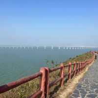 When visiting Tai O, you must take time to visit the Tiger Hill Observation Deck, where you can see the Hong Kong-Zhuhai-Macao Bridge. The pink railings are also very photogenic, and you’ll feel like you’ve been transported to Jeju Island in a second. It takes about 20 minutes to get there from Tai O Fishing Village, and only ten minutes to climb the mountain, which is not particularly tiring, and the cobblestone road is very easy to walk on. If you are lucky, you can see the lucky pink dolphins at three or four o'clock in the afternoon.