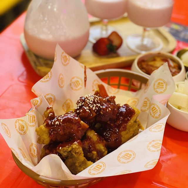 Located in Tai Kok Tsui, Shin Sa Dong Da Pai Dang is the sister shop of Shin Sa Dong Bathhouse, a popular Korean restaurant in Cheung Sha Wan. It is decorated with the most popular New Retro theme in Korea. There are many neon lights and subway station signs indoors, eating there is really chill and feel😎 The food features Korean sauce crab, Korean hot pot, fried chicken, spicy fried year cake, cold noodles, seaweed rice rolls, etc., as well as beautiful Korean photo drinks and shaved ice desserts. 🐮▪️Court Stewed Beef Ribs Pot (Serves 2-3) $268 The beef ribs are stewed very soft and seasoned, with a little butter in every bite, super delicious. The soup is very clear and sweet. The ingredients are carrots, white carrots, chestnuts and red dates. No wonder it is so fresh and sweet. It is a must-eat recommendation for autumn and winter. I feel warm after eating 🐔▪️Sin Shadong Fried Chicken Half ~ Sweet and Spicy $88 Traditional Korean fried chicken, crispy chicken and tender, with sweet and spicy sauce, very tasty, and half portion is not less, very affordable 🦐▪️ Seafood Scallion Pancakes $108 The outer layer is very crispy, the filling is smoky, still eat the grains of squid, shrimp, spring onions, dotted with the store's homemade spicy sauce, delicious 🍙▪️ Fried Shrimp Cheese Seaweed Rice Roll $88 Ready-to-eat, the rice rolls are filled with lots of fillings, seaweed rice wrapped in bouncy fried shrimp, egg threads, cucumber threads, carrot threads, burdock, pickled carrots, fresh ingredients, rich taste 🥒▪️Secret Grapefruit Carrot/Kimchi $20 Homemade Korean traditional kimchi is the best way to relieve greasiness after eating so many fried foods 🍓▪️Strawberry Milk with Honeycomb Special (Serves 2) $88 Great for taking pictures, super fragrant strawberry flavor, milk drink very smooth, and not too sweet, the most interesting is with a honey stick, just eat or accompany with strawberry milk can be, quite good to drink 🏛 Sin Sha Tung Tai Pai Dang (Tai Kok Tsui) 📍G/F, 10 Tai Ching Street, Tai Kok Tsui #Shinsadong Tai Pai Dang #Korean Cuisine #Korean Style #Beef Rib Pot #Korean Fried Chicken #Korean Rice Rolls #Korean Pancakes #kol #foodkol #foodlovers #blogger #foodblogger #foodkol #food #foodie #foodlover #foodforfoodies #hkfood #hkfoodie #hkfoodblog #hkfoodblogger #hkfoodstagram #hkfoodpic #hkfoodporn #hkfoodie