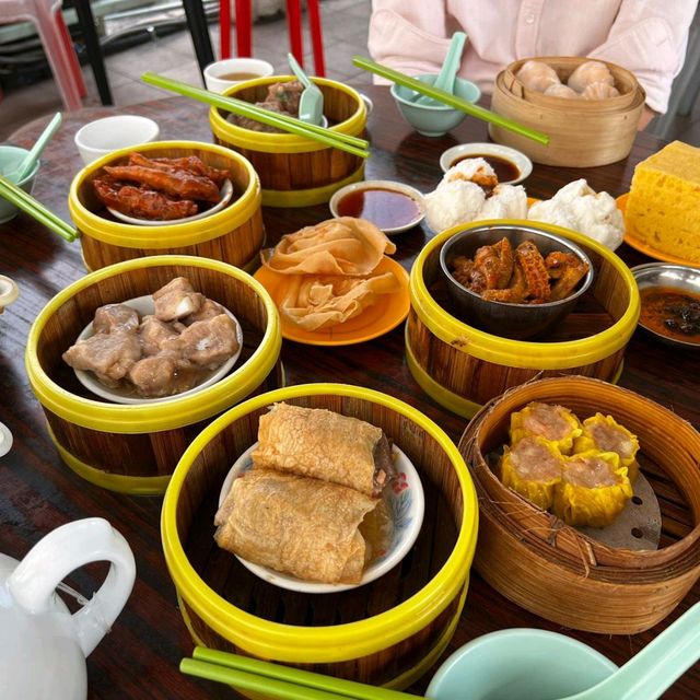 Shrimp dumplings, siu mai, Teochew vermicelli, chicken ball buns, sausage rolls, shiitake mushroom and cotton chicken,