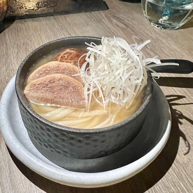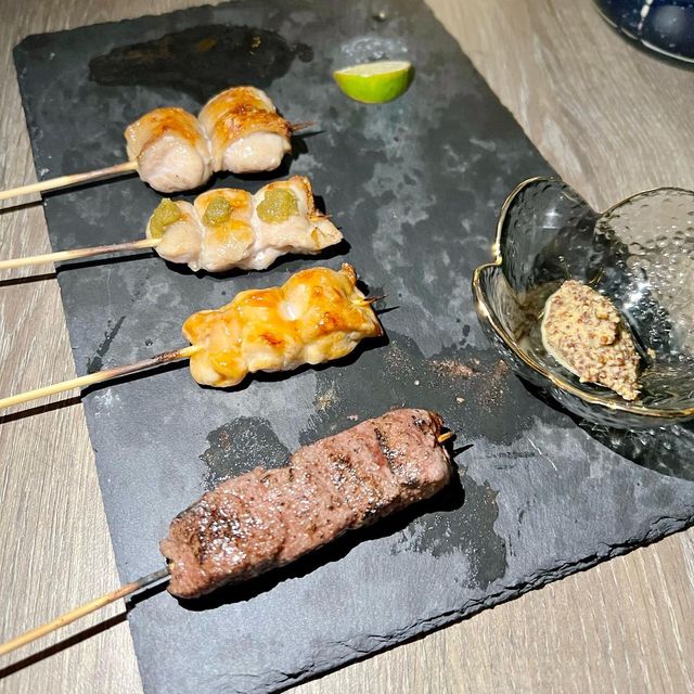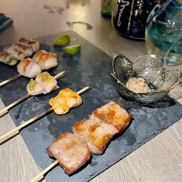 Approaching Christmas very well in Central finished hair, a friend said he wanted to eat skewers and drinks, saw this newly opened [KATANA by SAKEH] is a specialty skewers shop and wine and drink very suitable to talk to friends 👍🏻 I went in to eat ~ Sit down and see what's good on the menu 😋 The restaurant is ordered with QR code, the service is quite good, the environment is very comfortable, a good place to sit down and talk 👍🏻 An Yihu Tosa Gin (Unfiltered Pure Rice Gin 300ml This sake is easy to enter, with a sweet taste, and goes well with skewers 👍🏻 Grilled Bird Combo (Chicken Oysters and Chicken Legs) - Chicken oyster meat salt grilled Grilled with salt to enhance the freshness, the meat is tender, juicy and smooth - Chicken leg meat sauce grilled The meat is very tender, very smooth and juicy with barbecue sauce and fragrant - Chicken thighs Grapefruit pepper The meat is tender and delicious, and juicy with grapefruit pepper very fresh grapefruit flavor, plus black pepper makes the taste more out😋 Salt-grilled beef short rib skewers Very soft grilled just right, can lock the meat juices, keep the meat very soft New Zealand lamb chops I don't usually like to eat lamb chops for fear of having a spicy taste, but this lamb chop is not spicy, it's grilled just right, the meat is tender and juicy👍🏻 Thick-cut beef core Very thick and not very tough, quite refreshing and delicious Asparagus pork rolls Served with asparagus feels so greasy, more able to bring out the deliciousness of the meat Sea of ​​​​Temura The tempura is made very crispy and just right, a portion is enough, perfect with wine 👍🏻 Mini parent-child bowl I ate skewers with rice and it didn't feel so smooth. The portion in a small bowl was just right, and the taste was very good😋 Beef soup udon After eating the skewers, I ate a bowl of small beef soup. The winter is not so greasy. The soup is clear and the udon is cooked just right —— #central #hkfood #foodie #foodiehk #foodhk #centralfood #sake #skewers #centralrestaurant #restaurant #HongKongrestaurant #foodHongKong #HongKongfood #newstore #skewershop #barrestaurant #japanese #foodrecommendations #fooddiary #goodplaces