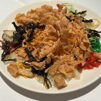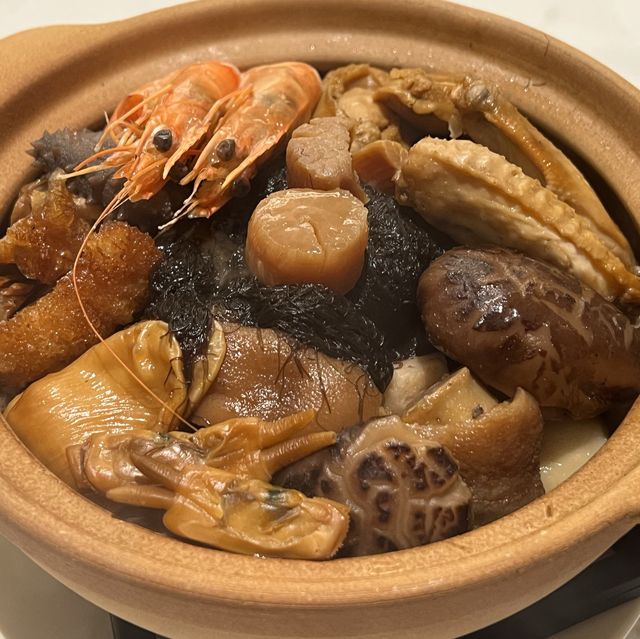 When we passed by the Putian branch in Harbour City that day, they were promoting the Chinese New Year set menu. It looked like the dishes were very rich, and we had never tried the Singaporean Chinese New Year set menu, so we were naturally attracted to the store😎 ✏️Location (8/10): Entrance to the underground parking lot of the shopping mall ✏️Environment (9/10): The decoration is noble and bright ✏️Hygiene (9/10): The table is clean and tidy, and it feels hygienic ✏️Service (8/10): Friendly attitude and attentive service ✏️Food (9/10): The portion is super large and impeccable 🍱Hongyun Set Menu (Two-person Meal) - $998 The amount of food is absolutely full, and it is not to mention that it is a meal for four people. Of course, we finally packed some to take home, which can be said to be more than enough every year! The names of the dishes are also very meaningful, and with the waiter's congratulatory words, it is very festive🧨 🌟Good Luck and Fortune Fish Sashimi (Abalone) The first dish is Singaporean Lo Hei, with a very appetizing special sweet and sour sauce, paired with a variety of ingredients, including abalone, red and white radish, green and red pepper, pomelo meat, ginger, seaweed, radish, peanuts, sesame and fermented bean curd chips, each of which has a special auspicious meaning. During the process of picking up the fish, the waiter will say some congratulatory words, which are fun to hear and even happier to eat🥰 🌟A bowl of abalone and prawn hot pot The main course finally appeared, which is a hot pot with noble and rich ingredients, including abalone, sea cucumber, scallops, prawns, fish maw, clams, pig's trotters, hair algae, Fujian pork balls, mushrooms, chicken wings and taro. The sauce is quite fragrant, the ingredients are cooked soft and tasty, and the quality is quite high. For this set price, it is really worth the money😍 🌟Scallops with asparagus and XO sauce The scallops are big, fragrant, soft and sweet, the asparagus is smooth and has no residue, and the XO sauce adds a lot of freshness, and the overall appearance is good Also delicious😊 🌟Black garlic duck soup Each person gets a bowl, with a lot of duck meat in the bowl, the meat is firm, and with black garlic, the taste is very sweet😃 🌟Mazu Peace Noodles We call it the red mushroom version of red mushroom seafood stewed noodles, with noodles, fresh shrimp, flat meat, bean curd, snow peas, cabbage, mushrooms, eggs, seaweed, etc. The noodles are smooth, the soup is sweet and rich, and the taste is attractive😋 🌟Taro ball peanut soup The four-color taro balls are not only colorful, but also chewy and delicious. The peanuts are cooked soft, and the soup has a little peanut fragrance but not too sweet😜 🏠Putian (Gangway Arcade) 📬Address: Shop G103, G/F, Gateway Arcade, Harbour City, 3-27 Canton Road, Tsim Sha Tsui #foodie #hkfoodie #HongKongFoodGuide #Putian #FujianCooking #PunCai #NewYear #HarbourCity #HongKongRestaurantRecommendations