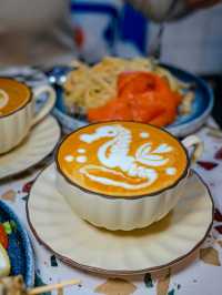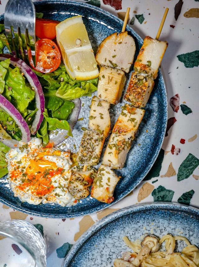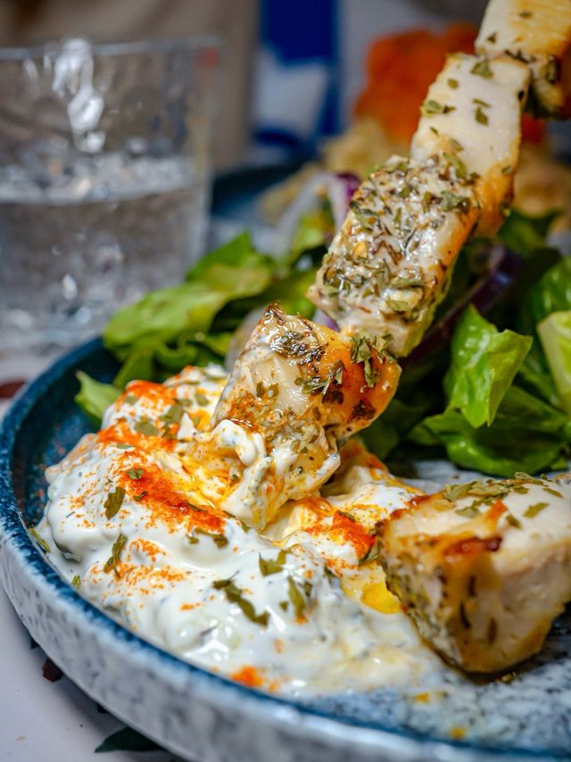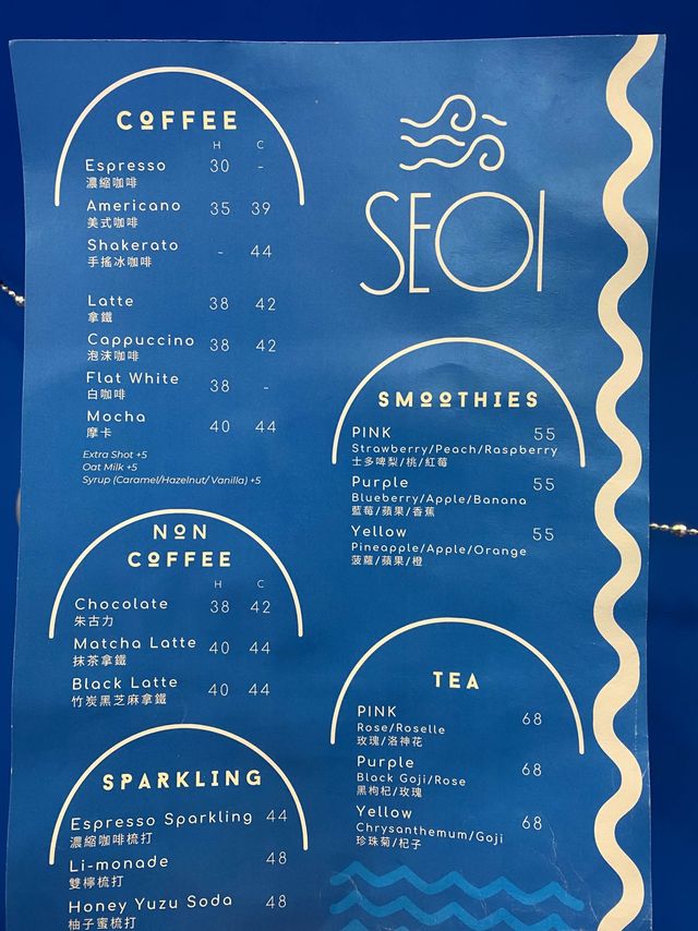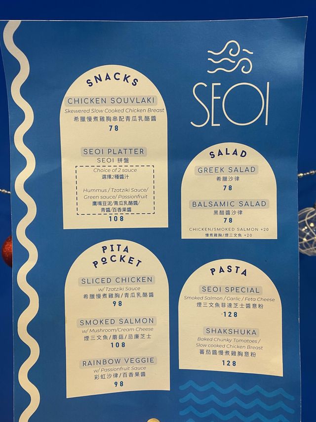 Restaurant: SEOI (West End) Address: G/F, 4D Water Street, Sai Ying Pun, Western District Explore local cafes🍽, walk from east to west in Hong Kong Island, go to the alleys of Sai Ying Pun to find this hidden cafe - SEOI (Cantonese: water) @seoi_samtolane. Cafe has only been open for about 3 months, although the environment is small at a glance, but the blue and white Greek marine style decoration design attracted me into 🇬🇷, it was like a short trip to Europe 🛫 ✝️Greek Slow Cooked Chicken Breast Skewers with Cucumber Yogurt Sauce $78 Chicken breast that was slow cooked for an hour, cut into a bite Size skewered with bamboo skewers, a total of ten pieces. Add vanilla to season 🌿, with homemade sweet and sour cucumber yogurt sauce and lemon juice 🍋, appetizing and delicious 😋, the meat is quite tender, and there are salad side dishes 🥗 ✝️ Smoked Salmon Feta Cheese Sauce Pasta $128 The smoked salmon is built into a rose shape 🌹, stacked on the spaghetti looks good, the spaghetti is fried with feta cheese, onion 🧅, mushrooms, the texture is creamy like eating carbonara spaghetti, eat the bottom to see more oil, a little greasy 🤏, but the cheese flavor is really irresistible 🧀 For drinks, I ordered a Latte ($38) and Cappuccino ($38). The shopkeeper cooked and made coffee ☕️, seriously 👍. The coffee beans used are double origins, characteristic in the middle and front of the more Fruity, with a sweet and sour fragrance, with milk and a faint floral fragrance, unlike the usual outside drinking more popular nutty coffee bean fragrance, latte art pattern is worth taking two more photos📸, the seahorse is really beautiful😍 #foodie #urbanexplorer #localtour #cafe