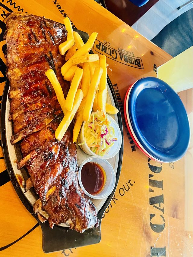 #newyearadventure Location: Level 3, The Peak Such a wonderful place with a view and delicious food. (we love the garlic bread, chicken Cobb salad, ribs and shrimps) also the pineapple margarita😍And if you are a fan of Forest Gump, you will find this restaurant, Bubba Gump, a very nice place to go too. After taking the tram to the Victoria Peak, be sure to take time to eat in this restaurant, even though it's expensive. Still, it's worth trying the food. They've got amazing desserts too. Budget: 3 people cost us almost 500 HKD per person for meals, drinks, and desserts. #hong Kong #hongkongtrip #hongkongtravel #food #foodie #foodie #ribs #deserts #salad #drinks