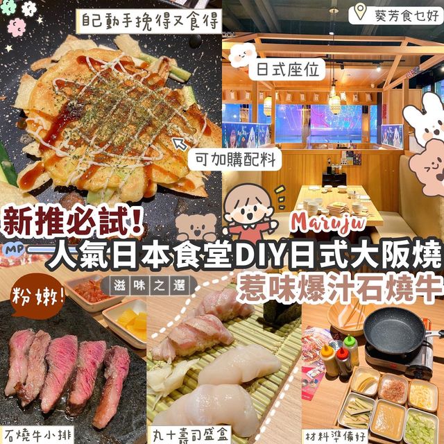 Does anyone like to eat Osaka Grill like me!?️ Recently I saw many people recommend this Japanese restaurant located in Kwai Fong🍴 Their new menu in addition to DIY Osaka Grill also added three new stone grilled steak series 🐮 playful editor decided to try with friends, the taste is good 😝 🥞 Osaka Grill DIY $108 SET will include Osaka barbecue, cauliflower, chips, cheese and cucumber ingredients, you can also add + $ 28 up to meat 🥩 Follow the instructions to make your own taste of Osaka barbecue 🤩 You can also use mayonnaise, barbecue sauce and wood fish thread to draw unique pictures and text, adults and children are suitable☺️ 🔸Stone Grilled Beef Sirloin $238 The stone grilled steak series has 3 beef parts to choose from, including beef fillet, broiler and beef ribs 🐮 placed on the hot stone slab immediately sizzle, remind you to be careful of the oil 🔥 This time I chose beef ribs, rich meat flavor, in addition will be served with pickled carrots, kimchi and barbecue sauce more delicious 😄 🍣 Maru Ten Sushi Set $298 When you come to a sushi restaurant, you have to order a plate of sushi😗 There are 5 kinds of sushi in the box including sashimi, red shrimp, seaweed, cod fillet and golden seaweed. The seaweed is very fresh and sweet 🍵Cold Strawberry Matcha Latte $55 ☕️Ice drip coffee $58 Matcha Latte Matcha flavor is rich 🍓 Add strawberry and strawberry sauce together will not be too sweet, but add strawberry to drink more refreshing 🌝 Iced coffee is quite refreshing to help relieve thirst ☺️ < Address🗺 Maruju Japanese Restaurant @marujuhongkong Shop 484-487, 4/F, Metroplex Plaza, 223 Hing Fong Road, Kwai Fong ________________________________ Want more food and fun information? Follow @sohyeon_sharing now to pay attention to the latest recommendations🤩 #foodie #hkfood #hkfoodie #cafe #hkfoodblogger #Hong Kong food
