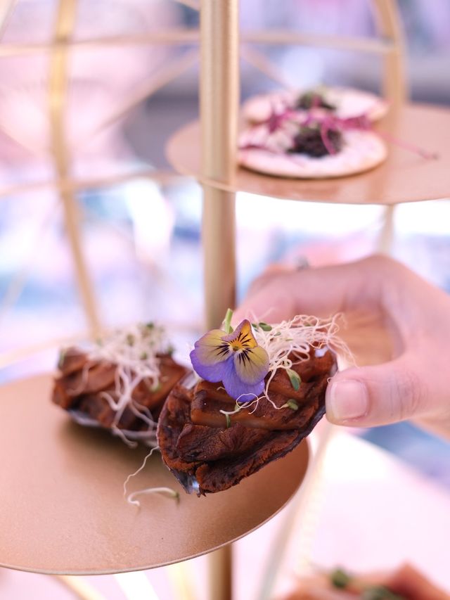 The weather is nice ☀️, and you can go to the girly pink rooftop and enjoy two afternoon teas 🫖 with three beauties Tea Set A is served in a pyramid style. For savory dishes, I like the spicy sausage croissant and catfish toast, which are both characteristic and fragrant; while the desserts include soft and fragrant sesame cheesecake, apricot tart and chocolate cookies. Another Tea Set B, placed on the shelf of a good hot air balloon, will also rotate 🔁, great for taking pictures 📸 Savory dishes include raw pickled bacon, caviar biscuits, and Parma Ham croissants🥐, while desserts are richer, including red velvet cake, green tea tart, chocolate mousse, and mango cake Eat tea, of course, with the same fantastic, unique cocktail 🏝️ Floated Island Use a pink coffee cup topped with marshmallows and chocolate 🍓Strawberry Also pink 💖, filled with strawberries🍓, pink Macaron, and cookies, beautiful to drink ~ 🌇 After dusk A layer of purple and a layer of orange, very twilight 🌸Cherry Blossom Wine Using Japanese grapefruit, the taste is extra fresh Address: Arcadia Restaurant & Bar 30/F, Kim Chao Yang Centre, Phase 2, 1-29 Deng Lung Street, Causeway Bay #Causeway BayFood #Causeway Bay #HongKongFood #hkfoodie #hkfood #hkig #hkgirl #photo #photorestaurant #afternoontea #afternoonteahk #hongkonggirlsafternoonteahk