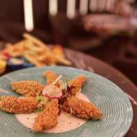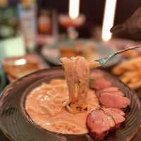 After work made an appointment with a friend to find a bar to eat something to talk 🍻 Knowsley Station's newly opened Backdoor environment is very large, indoor and outdoor can sit 👍🏻 The decoration is more stylish, many LED light tubes of the interior decoration, 💡 the lights also know how to change colors 🌈 very cyber😎 🍟French Fries Homemade Mustard Truffle Sauce $68 The must-order wine snack French fries are my favorite American thick straight potatoes 😋 There are three sauces to match, black truffle sauce mustard sauce and ketchup 🥫 The fries are fried dry enough, crispy on the outside and soft on the inside, no oil taste 🍗 Spicy Fresh Lemon Peel Crispy Fried Chicken Wings $68 The portion was relatively small, a plate of six pieces of open-sided crispy chicken wings, slightly fried a little dry, if there was a sauce to go with it would be even better, a little spicy 🍝Crispy duck breast, mint cream pasta $138 There is enough cream sauce, used spaghetti, very juicy 👍🏻 The mint flavor is also rich enough, the whole plate is pink 🤭 The duck breast is fried until the crust is crispy and salty 🐡 Grilled Chicken Bubble Fish $88 When it was just served, the hot and sweet mirin taste was good with wine. It is recommended to eat as soon as possible. It is a bit hard after cold🫣 🍸Strawberry sour $128 Made with Vodka, Strawberry, Cranberry, Sweet & Sour, strawberry🍓 and cranberry🍒 juice flavor is enough, sweet and sour, plus Vodka is easy to enter, very suitable for ladies cocktail👩🏻‍🤝‍👩🏼 🍹Dry Cranberry Spritzer $118 Cranberry, grapefruit, Lemon You will be more suitable for those who like fruity acidity, plus lemon is very fresh, and not sweet, very thirst-quenching Address: Backdoor, Knowsley Terrace, Tsim Sha Tsui #HongKongFood #hkfoodie #Tsim Sha TsuiWestern #Tsim Sha TsuiFood #Tsim Sha Tsui #Tsim Sha Tsui #Tsim Sha Tsui #Tsim Sha Tsui #Tsim Sha Tsui Bar #Tsim Sha Tsui Find Food #Hong Kong Western Food #Hong Kong Western Food #Pork Saddle #Hung Fu #Birthday Rice #Birthday Rice Series #Hidden Food #Jordan Food #What's Good to Eat in Tsim Sha Tsui #What to Eat in Tsim Sha Tsui #Tsim Sha Tsui Restaurant #Upstairs Bar #shishahk #HongKongHookah #Tsim Sha TsuiBar Restaurant #Tsim Sha Tsui Food #Yau Tsim Mong Food #Yau Tsim Mong Western Food #Yau Tsim Mong Hotel #Spaghetti Control