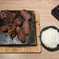 ⭐ Daiwa Beef Stone Grill Specialist 📍Shop 123, G/F, Depot Shopping Centre, 3 Niu Tau Kok Road, Bull Head ⬇️⬇️⬇️⬇️ I've eaten at this several times before, it's a really good value for money restaurant! Today I finally share my heart with you😂 It has a buffet bar with salad vegetables, noodle soup, rice and sauce for you to carry yourself. 😁 Not eating the main meal has a pre-meal salad to eat is quite appetizing 👍🏻 The environment is very comfortable, quite a lot of seats, the staff are very polite. There are many kinds of food, and the price is not expensive😆 ✅ American Angus Beef Diaphragm ($130/300g) This is super super delicious! The beef flavor is very outstanding, the meat is not "shoes", the taste is excellent. 🤤 I think it is very good, and it is grilled to be very fragrant, and will not burn to the bottom or burnt. 👍🏻 Easy to control, is quite good 🤭 Also add a little salt and black pepper yourself, very tasty! ✅ Fried Chicken Nuggets (Set +$3) Change the barbecue set with snacks and drinks for an additional $15, fried chicken pieces for another +$3. Fried crispy skin and soft inside, very Juicy inside, chicken pieces are very smooth, very good🤤 and not a lot of salt, the seasoning is done very well👍🏻 ✅ Triple Cheese Homemade Wagyu Pork Fillet Apo Tail Egg Burger ($65) The triple cheese was wicked, with a layer of melted cheese, great! The bun is very big, very attractive😍 The wagyu pork fillet has a lot of juice, the pork flavor is strong, and the taste is super good! Served with an egg, it's unbeatable! 🤩 ✅Butter corn It was quite good, the corn kernels were crispy 👍🏻 The butter was fragrant enough. #foodie #hkfoodie #hkfood #HongKongfood #food