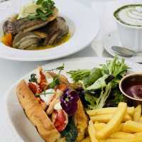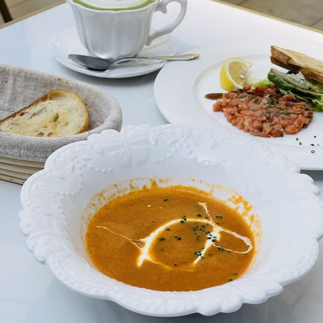 Located in Tsim Sha Tsui The One's Royal Inn, the environment is super beautiful, attracting a group of friends to take pictures of beautiful photos to come to the pilgrimage, food standards since the opening has been well received, this time I visited again, try lunch, and very lucky to sit Outdoor location, in the sun to drink a cup of coffee for lunch, happy 😋 ✨Lunch Set has 3 and 4 courses to choose from, including starter, soup, main course, drink or a daily dessert, rich and many choices 🫕▪️Lobster Bisque French lobster concentrate with crispy sourdough bread toast 🌮▪️Smoked salmon tartare shallot, lemon olive oil, sour dough toast Smoked salmon tatar, salmon cut into tiny pieces, containing red onion, spring onion, with black vinegar sauce and toast, appetizing appetizer 🐠▪️Pan Seared Sea bass fillet white pepper, celery, clams, barley Pan-fried herring fillet with white pepper cooked mussels, first drink a sip of soup, full of fish and mussels freshness, two large pieces of herring fillet fried to crispy fish skin, thick meat texture, mussels fresh and sweet, with the fish soup sauce to eat together, healthy and tasty 🦞▪️Boston lobster roll +$68 kale salad, lime Mayo, French fries The signature fresh Boston lobster bun, the bread is super fluffy and full of butter flavor, wrapped in fresh Boston meat lobster, the meat is fresh and tender, with kale and salad dressing, very high quality, with fresh fries and fresh salad 🍵▪️Green tea Latte The heart-shaped latte art is super beautiful, the ratio of green tea powder and fresh milk is just right, the green tea flavor is rich, and you can still drink the fine tea powder at the bottom 👍🏻 ☕️▪️Long Black After eating, it's best to sip a cup of instant rich black coffee 🏛️ ROYAL INN 📍 Shop L121, 1/F, The ONE, 100 Nathan Road, Tsim Sha Tsui #royalinn #inn series #popular western restaurant #french western restaurant #Signature Fresh Boston Lobster Bun #Smoked Salmon Tata #coffee #kol #foodkol #foodlovers #blogger #foodblogger #foodkol #food #foodie #foodlover #foodforfoodies #hkfood #hkfoodie #hkfoodblog #hkfoodblogger #hkfoodstagram #hkfoodpic #hkfoodporn #hkfoodie