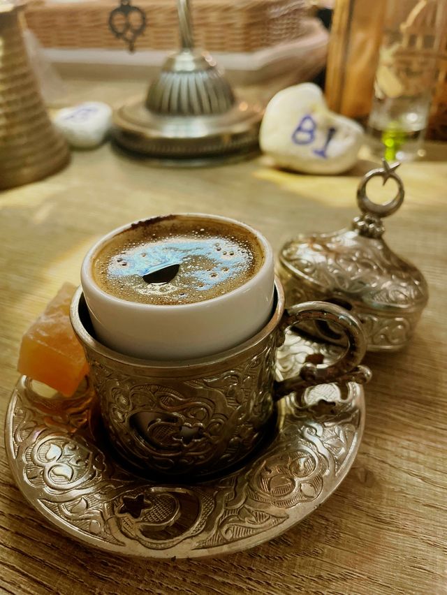 Coffee on the Sand, a Turkish-owned coffee and snack shop, is a must-try! ☕️ This was my first time trying hot sand coffee, and I was even able to experience the making process firsthand! The owner was very friendly and explained everything from the history to the production methods in detail. He even gave us the opportunity to try it ourselves! 👍🏻 ☕️Hot Sand Coffee Made with original Turkish beans, it's topped with traditional Turkish fondant, a perfect match! 🤤 🥧Authentic Turkish shredded wheat cake A local favorite, it's sweet but not overly sweet, and paired with vanilla ice cream, it creates a perfect fusion of ice and fire. Both inside and outside, the atmosphere is very comfortable, with a Middle Eastern touch. Turkish lamps, traditional ornaments, and clothing are also displayed in various corners of the shop, perfect for visitors to wear and take photos. 👍🏻 In addition to the Hot Sand Coffee experience, there are also mosaic lamp workshops. Visit their Instagram to book an appointment. Instagram: coffee_onthesand 📍Address: G/F, 335 North Main Street Village, Ma Wan, New Territories 🏝Environment/Facilities: 🌕🌕🌕🌖🌑 🌟Features: 🌕🌕🌕🌕🌕 💰Price per person: $100+ #Ma Wan #Ma Wan Food #Ma Wan Places #Hong Kong Places #Local Travel #Foodie #Turkish Cuisine #Hot Sand Coffee
