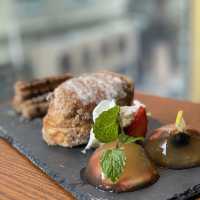 This time I came to the Nate 2nd floor opposite Kowloon Park in Jordan, Tsim Sha Tsui, Spanish fusion dishes, there are some ball lights at the entrance to check in, and you can also walk on the 1st floor🙊 🍇 Thinly sliced ​​slow cooked octopus with Japanese sea grapes $98 Slow-cooked octopus carpaccio with sea grapes 🍅 Surface in tomato puree with a little sweet and sour sea grapes 🍇 grains distinct but also very appetizing 🐙 Octopus thinly sliced ​​is not too difficult to bite, an appetizing appetizer 🍶 Bang Bang Goose Liver with Japanese Sake $98 Foie gras lollipop sake shooters 🍭Bamboo skewer inserted with spherical goose liver, sprinkled with crushed pistachio on the surface, goose liver melts in your mouth, immediately drink a glass of sake, the goose liver flavor slowly changes in the mouth, very special feeling😆 🌯Spanish Black Pig Ham and Grapefruit Honey Eggplant Roll with Japanese Grapefruit Vinaigrette $68 Jamon iberico & Yuzu honey aubergine roll There are four rolls in total, the outer layer is in the black pig ham🥓 the middle layer is in the eggplant🍆 in the vegetables🥬 This combination is very special, the first time to eat eggplant slices and then rolled also with black pig ham outside🙊 🥞Spanish Potato Egg Tart with Japanese Mint $88 Spanish potato omelette with cod roe Serve hot, thick egg cake, there are quite a lot of potatoes inside, full of potato flavor🥔 🍮🥖🍞Dessert Platter $108 Spanish fruit tea water Shingen cake, Spanish fried dough sticks, cinnamon toast Taparoom dessert platter Virgin sangria, churros, torrijas 🍮Shui Shingen cake jelly taste light, fresh feeling; 🥖Fried dough sticks are crispy, sprinkled with sugar, sweetness bursting💡; 🍞Cinnamon Toast In Spanish dessert, bread is dipped in milk with cinnamon flavor, dipped in egg liquid to fry, after the pot is sprinkled with sugar on the surface. The outer layer is crispy, you can eat chewing gum when you bite into it, but the inside is super soft 🤣 ➰➰➰➰➰ 📍 Tapa Room (Tsim Sha Tsui) Shop B, 2/F, The Nate, 176 Tsim Sha Tsui Road 📍 Tapa Room (尖沙咀) Shop B, 2/F, The Nate, 176 Nathan Road, Tsim Sha Tsui 〰️〰️〰️〰️〰️ #mylittle_Spanish food #mylittle_Tsim Sha Tsui #mylittle_lunch #mylittle_cheers 〰️〰️〰️〰️〰 #mylittlestomach #hongkong #hk #hongkongfoodie #hkfoodie #foodie #foodiehk #foodiehongkong #mylittlegourmand #Tsim Sha Tsui Food #Jordan Food #taparoom #hongkongfood #spanishfood #churros #torrijas #foiegras #seagrapes #hongkongstyle #foodblogger #tsimshatsui #LocalTour
