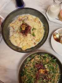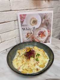 📍Hong Kong📍Causeway Bay 📍White Hse 📍Room 1501, 15/F, Union Business Centre, 508 Shepherd Road, Causeway Bay 📍Wednesday to Monday 12:00~22:30 🦄 Duo Creamy Bacon Cheese Cat Ears 🦄 Rating: 6.5/10 It looks quite beautiful 😝 Smell a very fragrant rich cheese flavor 🧀 but eat the cheese flavor is not heavy will not have a very filling very sinful feeling can be said to be a lighter version of cheese pasta 🍝 remember to match hot food! 🦄 Fried Spaghetti with Garlic and Coriander Mushrooms $109 🦄 Rating: 6.5/10 The portion of coriander is very generous. Basically every bite can taste the rich coriander flavor. The fried pasta is relatively dry🤏🏻 🦄 Butterfly Flower Green Tea $45 🦄 Rating: 6/10 The color is quite beautiful and suitable for girls to take pictures 😁 Remember to mix it before drinking. If you can have a little stronger flavor, it would be great 🤏🏻 🦄 White Hse Cookie Cup $69 🦄 Rating: 6/10 It's not the first time I've seen cookies as a drink cup 🍪 It's quite special but it's not that easy to make it tasty🤫 Cookies are sweeter and the milk is lighter and can be neutralized!! #foodieschu Causeway Bay ~~~~~~~~~~~~~~~~~~~~ #Causeway BayFood #HongKongFood #hkfood #hkfoodie #hkfoodies #foodies #foodie #whitehouse #whitehse #Shepherd's Road #LianchengBusinessCenter #cream #bacon #cheese #cat ears #coriander #mushrooms #fried pasta #butterfly #green tea #butterfly #cookie #cookies #cookie cup #strawberry #milk #milk #foodie
