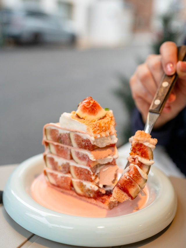 Discovered a super girly💕 cake shop near Exit 2 of Hongdae. The entrance looks like a foreign coffee shop, with dreamy pink tones that make it picture-perfect from any angle! This place specializes in colorful fruit cakes, each big enough to share between two people. The cakes are packed with fresh fruits, and the new seasonal flavor, fig, is a standout. One of their fig creations is a cheese mille-feuille cake, and I honestly can't tell if it's a fruit cake or a cake made of fruit 😍😍. The figs are in season, offering a uniquely sweet and fresh taste. However, they sell out quickly, so make sure to visit early! With the weather being cooler lately, I recommend sitting at the outdoor tables. If you're wearing a dress, it makes for a perfect photo op, and the gentle breeze adds to the comfort☺️. We couldn't resist trying another option: the melon fruit cake. The cream in this one is infused with melon, giving it a rich yet not overly heavy flavor. The cake itself is light and airy, and the refreshing melon makes it so easy to finish without realizing it 😂. 📍Turtlehip 📍Address: 565-19 Yeonnam-dong, Mapo-gu, Seoul, 1st Floor (Exit 2, Hongik University Station, Line 2)