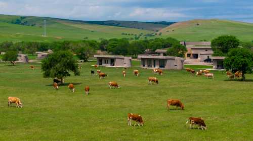 Waking up and pulling back the curtains reveals adorable cattle and sheep—a hotel surrounded by animals