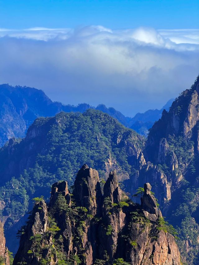 Who would have thought! Returning to Huangshan after 5 years, the change surprised even myself 😭 From a burden holding others back to a mountain climber walking briskly, this trip was totally worth it! 🌤️ One day to experience three kinds of beauty in Huangshan, luck was off the charts! At the foot of the mountain in the early morning, I was worried that a hoodie + 2 T-shirts + arm sleeves wouldn’t be warm enough, afraid of freezing like a 🐶 But once I started climbing, the sunshine blessed me, the green mountains looked charming, and the stone steps gleamed In the afternoon, suddenly thick fog rolled in, covering the sky and sun, instantly entering a fairyland When descending, the sunshine reappeared, golden scales shimmered on the mountain ridges, every snap was wallpaper-worthy! 💡 Hiking Tips to Avoid Pitfalls ✅ No need to wear too thick! You get super hot when moving, layering makes it easy to add or remove ✅ Choose the Yuping Cableway direction for walking down, the steps are gentle and the scenery is great ✅ Bring some energy bars + an empty water bottle, you can get hot water on the mountain to lighten your load ✅ If you want to capture the sea of clouds, don’t oversleep, early morning and evening have the highest chances Clouds leave the mountain without a care, birds tired of flying know to return It turns out the best scenery is not only at the peak of Huangshan but also in your own transformation ☁️