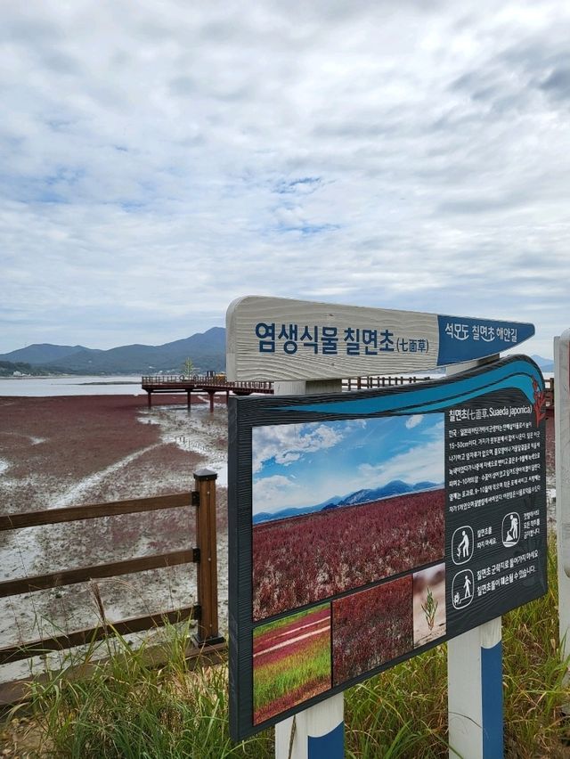 #FallTravel #GanghwadoTravel If you want to see special autumn flowers, head here to Seokmodo Island, Ganghwa Island. Even though I've been traveling domestically for 15 years and have completed a nationwide tour, this was my first time seeing flowers like this! It's a flower called Chilmyeoncho, which paints the beach a deep purple. It's a beautiful red, like autumn's burgundy, and it makes for a great photo opportunity. It was so amazing. - - 📍Seokmodo Chilmyeoncho Colony San 1-2, Maeum-ri, Samsan-myeon, Ganghwa-gun, Incheon