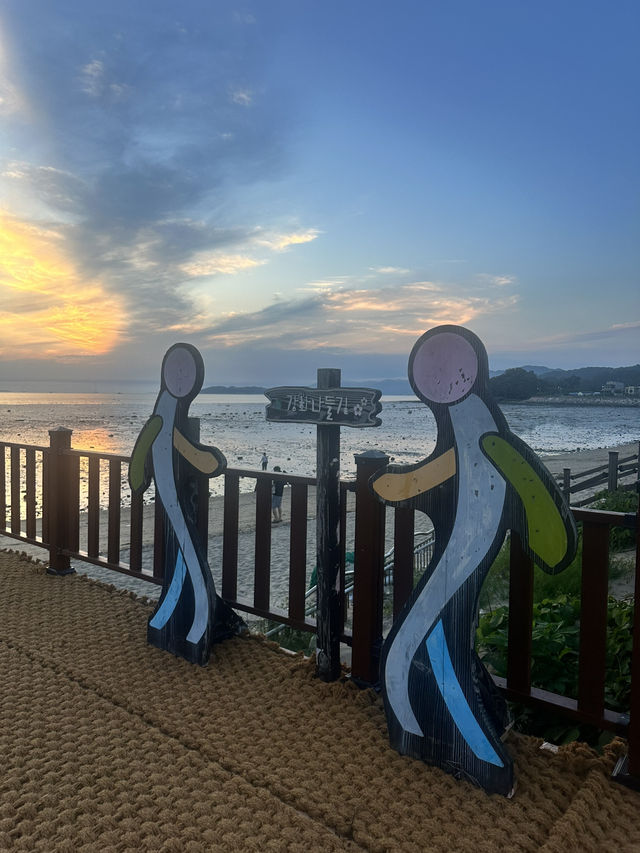 Janghwari Haenami Village, located in Hwado-myeon, Ganghwado Island, is a famous spot for watching the sunset crimson over the West Sea and tidal flats. A short 10-minute walk from the parking lot to the beach, along the deck and small paths, will reveal a photogenic sunset. It's particularly famous for the "omega sunset" phenomenon, where the sun dips between islands on the horizon, making it a frequent destination for photographers. As the sun sets, the sky quickly transforms into a twilight hue, blending with the tranquil seascape to create a truly captivating atmosphere. With amenities like parking and restrooms, it's the perfect place to stop and enjoy the sunset. #JulyTravelSupport #GanghwadoTravel #SunsetObservatory