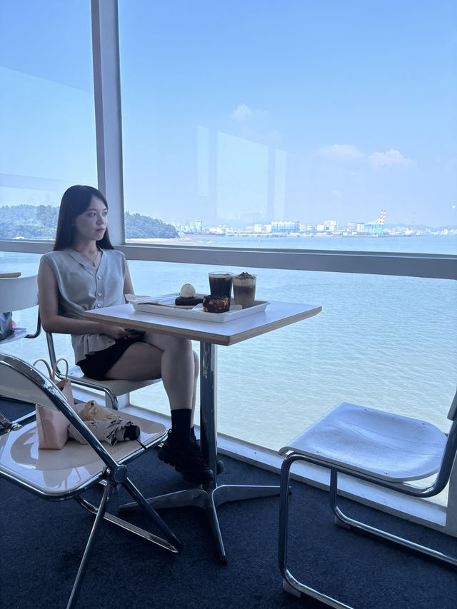 Between the blue sea and sky, a leisurely drink at Yeongjongdo Star Five Cafe.