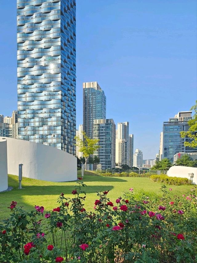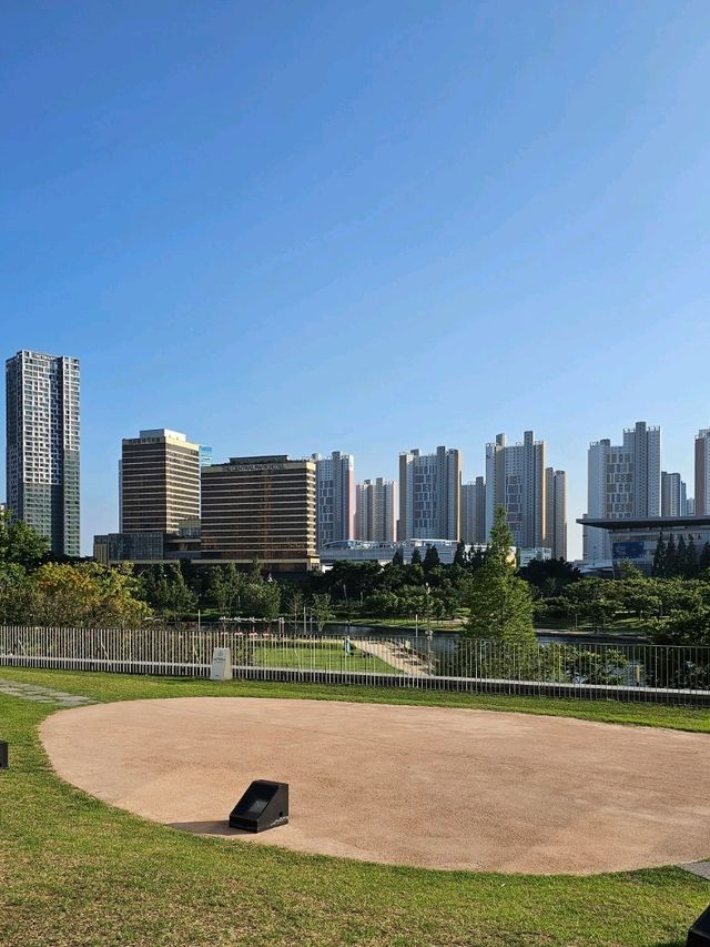 #SeptemberTravelSupport Central Waterway and Promenade At the heart of Songdo Central Park lies a long, calming man-made waterway, allowing you to hear the sound of water up close as you walk. The silhouettes of high-rise buildings float across the expansive water, creating a unique landscape where city and nature meet. In the morning, the sunlight reflecting off the water is truly breathtaking. Be sure to visit #SongdoCentralPark