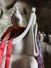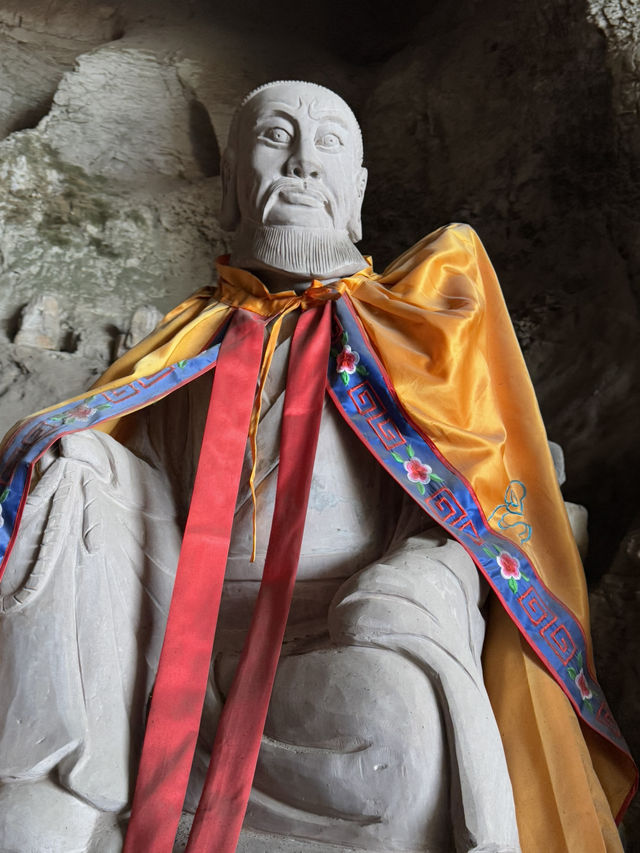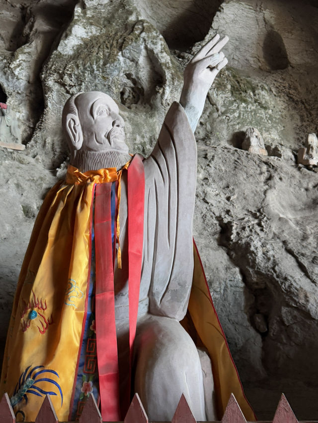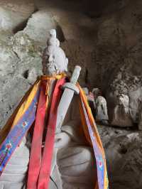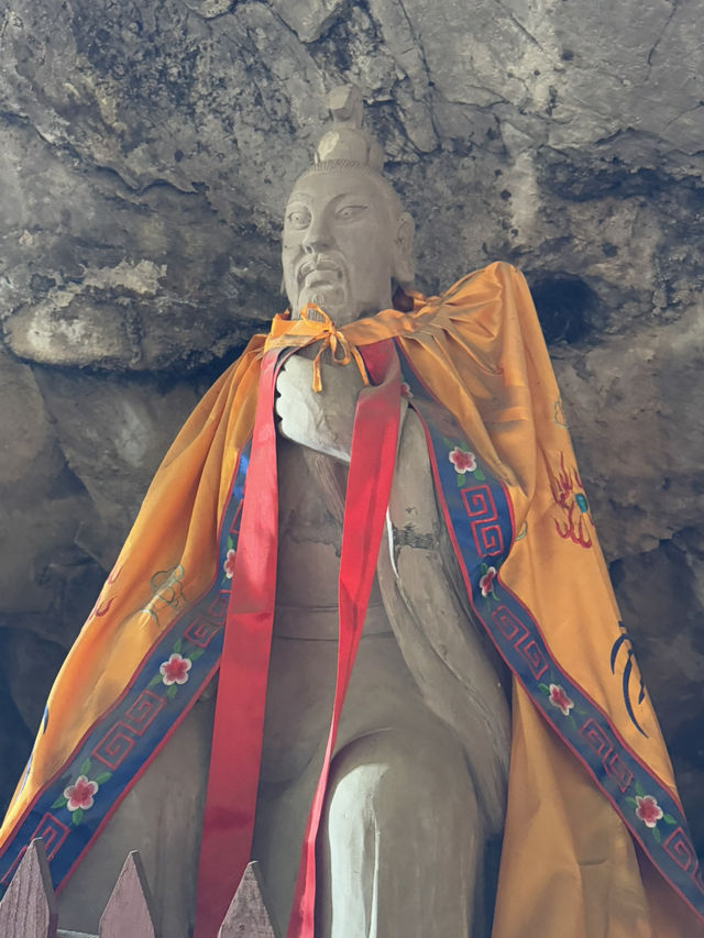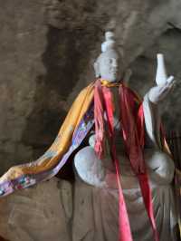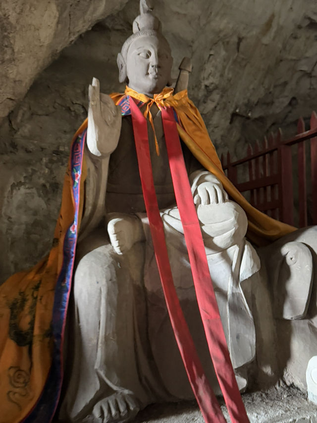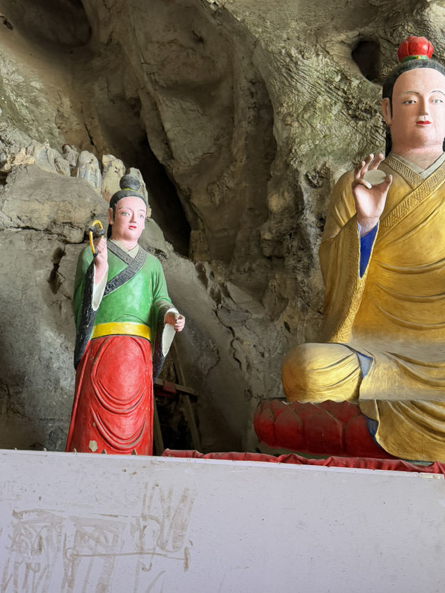 Sichuan Jinguang Cave | The Bodhisattva Hall: A Compassionate and Illuminating, a Peaceful Place in the Mountains In the deep valley of Sichuan Jinguang Cave, besides the majestic Nezha Main Hall and the Wangling Palace guarding the mountain gate, lies a gentler and more solemn abode: the Bodhisattva Hall. The Bodhisattva Hall captures the heart not with grandeur but with tranquility. The temple boasts ancient architecture, amidst the curling aroma of incense. The golden statue of the Bodhisattva sits upright on a lotus pedestal, brows lowered, a compassionate and solemn presence, as if listening to the whispers of the mountain's creatures and the hearts of the people. Worshippers here often come with the hope of seeking compassionate protection and family well-being. Unlike Nezha's heroic majesty, the Bodhisattva Hall offers a more gentle and tranquil atmosphere, like an invisible hand soothing the weariness and worldliness of travelers after a long journey.