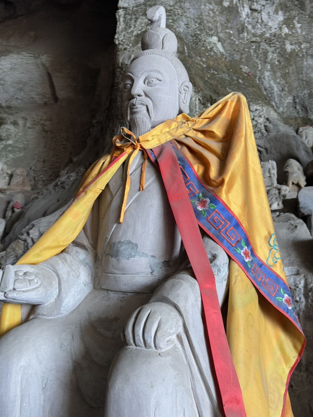 Wang Ling Temple in Jinguang Cave, Sichuan | Unwavering Guardianship of the Mountain Gate, the Distant Mountains Awe All Spirits Amidst the mountains of Sichuan, the Wang Ling Temple in Jinguang Cave stands quietly. This temple is not known for its bustling atmosphere, but for its majestic presence guarding the mountain gate. Incense curls in front of the temple, and the deity Wang Ling sits within, his face solemn, his expression imbued with an inviolable majesty. He is the guardian of this place, tirelessly watching over the mountains and rivers day and night, protecting pilgrims. Approaching the temple, one senses a solemn aura, a reminder that entering this secluded place requires reverence. "The distant mountains awe all spirits" perfectly captures the essence of Wang Ling Temple. Surrounded by vast green mountains and deep forests, the sound of wind and the chimes of bells intertwine, as if all spirits gather here, awe-inspired by Wang Ling. This power emanates not only from the deity but also from the people's generations-old faith.