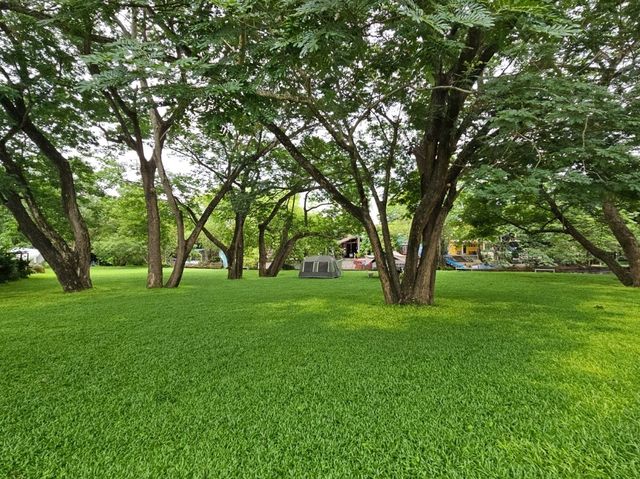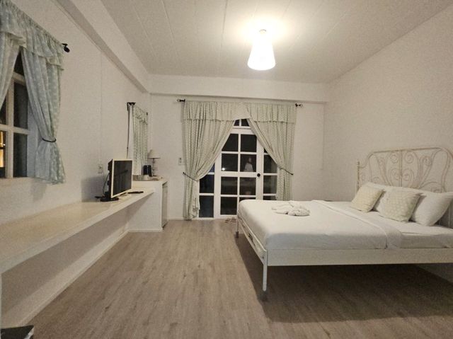 Located in Ban Wang Nang Nuan, Kaeng Krachan District, Phetchaburi Province, this accommodation is decorated in an elegant white tone. I love the atmosphere here as it is situated by the Phetchaburi River. When we visited, the water level was high and the current was strong, making it unsuitable for swimming. We booked a garden-view room, which was spacious and clean. There are also rooms adjacent to the swimming pool and a large grassy lawn. As for breakfast, the selection is limited but the taste is excellent.