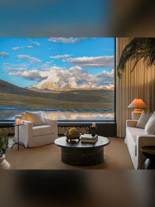 Nestled amidst golden meadows in a valley, this hotel offers a stunning 360-degree panoramic view, including a full view of the sacred Tibetan Yala Snow Mountain right from your room. You can even enjoy the mountain scenery while lying on your bed. The rooms are of a comfortable size, with a compact bathroom and a plush, soft bed. The lobby area features several photo-worthy spots. However, as the hotel is located in a remote valley, it is best suited for those traveling by private car, as there is no public transportation available in the area.