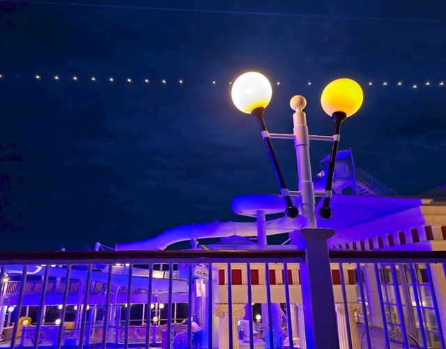 At night, the Star Cruises ship transforms into a grand stage draped in purple and white. The lights around the deck reflect on the sea, gently swaying with the waves, creating a mesmerizing, moving painting. During dinner, the buffet is laden with a variety of dishes, from freshly carved steaks to exquisite desserts, tempting you to go back for seconds—or thirds. After your meal, step into the theater to enjoy a song-and-dance show or a magic performance, where the lighting and music create a lively atmosphere. As the night deepens, return to the deck to feel the sea breeze and gaze at the interplay of lights and stars, realizing that the cruise's nighttime charm surpasses even the beauty of the day. 📍 Location: Star Cruises - SuperStar Aquarius