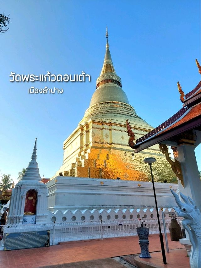 #TravelChat Wat Phra Kaew Don Tao, or Wat Phra Kaew Don Tao Suchadaram 🙏🙏Wat Phra Kaew Don Tao is an ancient temple in Lampang, thousands of years old. It's beautiful and historically valuable. 🙏🙏 Inside the temple is a large chedi containing a relic of the Buddha's hair, and a beautifully decorated Burmese-style pavilion. Luckily, we arrived in the evening, and the sunlight cast a beautiful golden glow on the chedi. Location: Phra Kaew Road, Wiang Nuea Subdistrict, Mueang Lampang District, Lampang Province