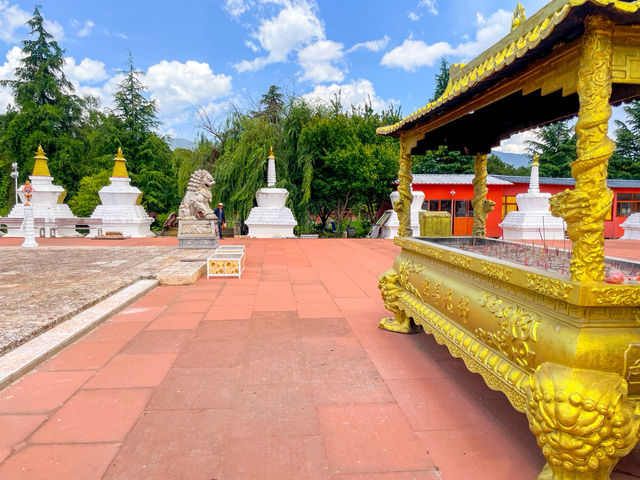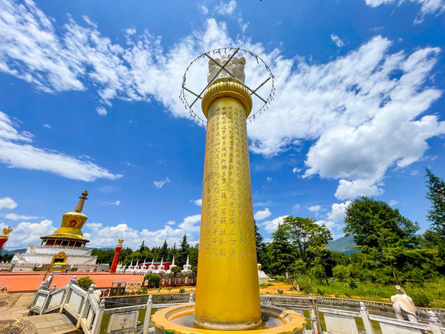 #OverseasTravel #China #Lijiang #DongboCulturalPagoda First built during the Tang Dynasty, Lijiang's DongboCulturalPagoda is a quiet attraction that, despite its vast and majestic scale, rarely sees many tourists. Around the golden pagoda, a wide plaza and sculptures create photogenic compositions. The Jade Dragon Snow Mountain and the blue sky in the distance seem to capture the essence of the scenery. The only drawback is that the area is somewhat under-maintained due to the lack of tourists, and taxis are preferred over public transportation. For travelers seeking a leisurely stay in Lijiang, this is a worthwhile option, so be sure to visit.