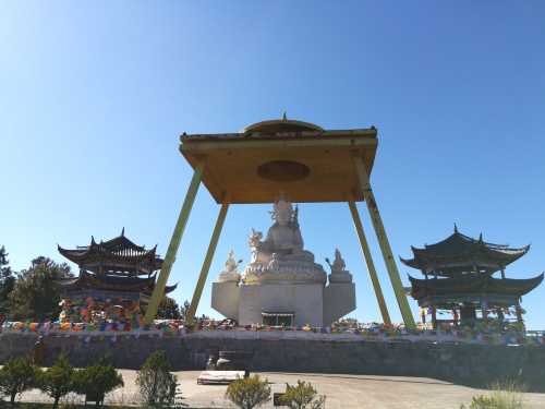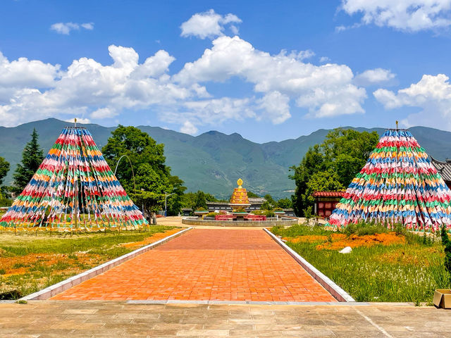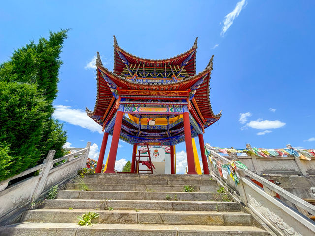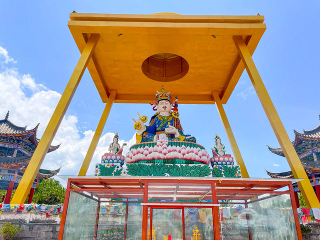 Lianshang Buddha Statue is a unique Buddhist statue in Lijiang influenced by Tibetan Buddhism, known for its large scale and distinctive appearance. Surrounding the statue is a spacious park where colorful Tibetan prayer flags, known as 'Dar Cho', flutter in the refreshing breeze, creating a mystical atmosphere. The 'Lianshang' in Lianshang Buddha Statue refers to an important figure in Tibetan Buddhism. While similar statues can be found in other regions, this particular site stands out due to its expansive park, offering plenty of opportunities for strolling and sightseeing. Don't just stay in the old town—explore the surrounding attractions for a more enriching experience.