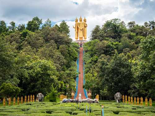 Wat Doi Sappanyu, Chiang Mai Province There is Phra Phuttha Chatumongkhon, the Buddha statue in 4 directions, or Lanna people often call it the 4 Buddhas (the word “Phra Chao” means Buddha statues). It is a standing Buddha statue facing 4 different directions with its back to each other, enshrined on a high and prominent base. Wat Doi Sappanyu was originally an abandoned temple called Wat Nam Bo Tip, which can be translated as the well of holy water. 📍 Ban Huai Niam, Village 6, Don Pao Subdistrict, Mae Wang District, Chiang Mai Province ⏰ 08.00 - 17.00 hrs. every day #Chiang Mai attractions#Winter travel #Beautiful temples in Chiang Mai #Beautiful temples all over Thailand