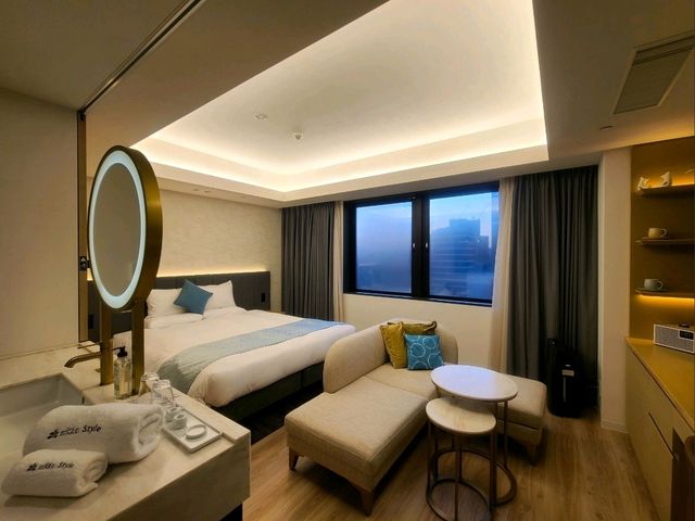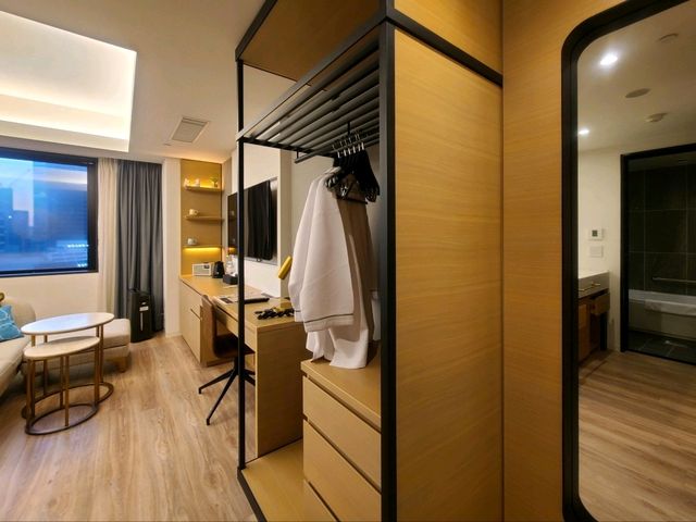 #OverseasHotels Nikko Style Nagoya is a new hotel that opened during the COVID-19 pandemic. Its location is both an advantage and a disadvantage, as it's within walking distance of everything. The nearest subway station is Kokusai Center, which is just one stop from Nagoya Station on the Sakuradori Line, a four-minute walk. It's also an eight-minute walk from Fushimi Station on the Higashiyama Line, the most popular line. It's also about a 10-minute walk from Nagoya Station. Walking from Nagoya Station is the standard route, unless you have a one-day subway pass. However, the 10-minute walk can be tricky when it's rainy, hot, or cold. All rooms at the hotel are 30 square meters, with the exception of accessible rooms, which are slightly larger at 32 square meters. Excluding five-star and resort hotels, the standard rooms are among the most spacious at four-star hotels. The only differences seem to be in amenities and extra services depending on the room type. The floors on which the rooms are located also appear to vary. First of all, the room is spacious, making it a great option for those who don't like cramped spaces. I booked a king room on the Premier Floor. I was given a room on the 12th floor. It has a view toward Nagoya Station, but the privacy film on the window means you can only see outside clearly from the edge of the film. 🤣 I'm not sure if the other rooms are like this, but the curtains are double-layered and blackout. I'm not sure why they're attached to the window. It wasn't particularly inconvenient, but I was a little curious. This type of room seems to be popular in Korea these days. They offer a studio-style room with an open bathroom and bedroom, creating a sense of openness. This one has sliding doors that can be opened and closed. This is my fourth stay near Fushimi Station, following the Hilton, Nagoya Kanko, and Jal City. It's quieter than Nagoya Station or the Sakae area. All four hotels are notable for their spacious standard rooms. Breakfast is served on the first floor, with a choice of five-course Korean set menus, and a buffet-style salad bar and drink bar. It's stylish, but lacks something. This brand is well-known for hotels like Grand Nikko and Nikko. Nikko Style is said to be a four-star hotel, but while the service and facilities are a bit lacking, the room conditions and amenities seem to have been improved. Thank you.