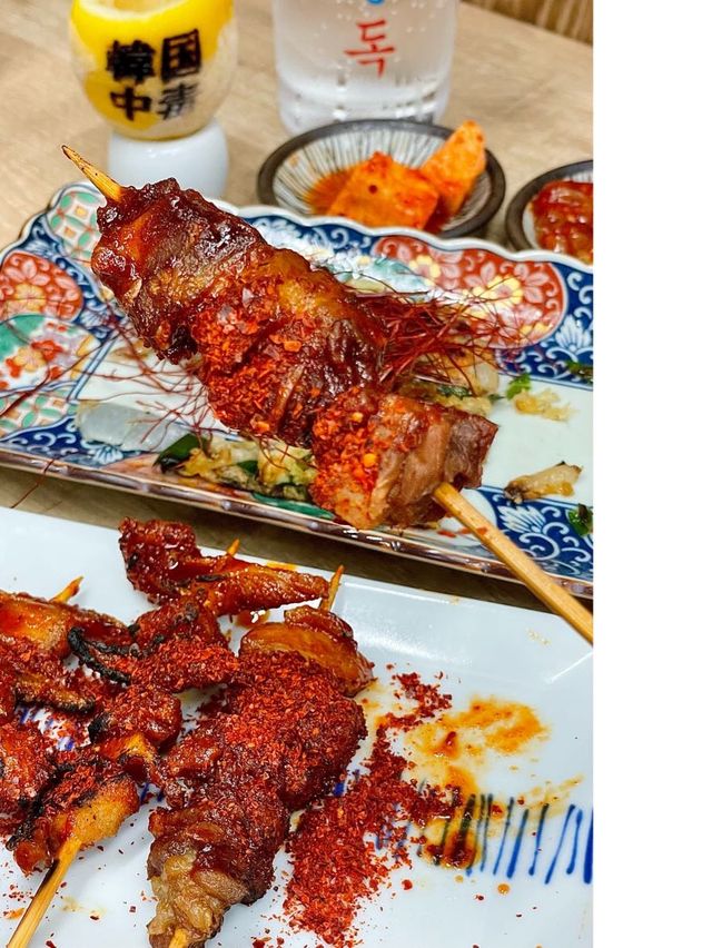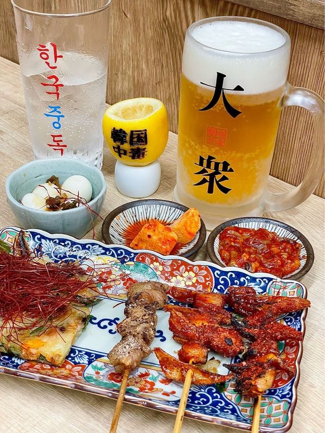 [Tasty Korean Food, Korean Addiction, Nagoya Station Branch] A new Korean bar and izakaya in Nagoya Station "Jinanbo" → "Korean Addiction" Reopening on May 2nd! ︎ The restaurant's specialty is, of course, their secret red sauce dakkoji (Korean yakitori). Dakkoji is yakitori, but with a Korean flavor. 🇰🇷 ☑︎ Korean Yakitori Thigh with Red Sauce: ¥170 ☑︎ Yagen Cartilage with Red Sauce: ¥180 ☑︎ Chicken Neck Salt: ¥180 ☑︎ Appetizer: ¥500 (Choose from seven types of kimchi) ☑︎ Mayak Quail: ¥380 ☑︎ Spicy Beef Tendon Stew: ¥580 ☑︎ Seafood Chijimi: ¥620 ☑︎ Meat Bomb Bibimbap: ¥890 The "Meat Bomb Bibimbap" I had as my final dish was very filling. It was brought to me piping hot and the staff grilled it for me. ☑︎Draft Beer 399 yen ☑︎Cheers Whole Lemon Shot 399 yen A frozen lemon is hollowed out and filled with alcohol. ☑︎Ramune 399 yen Store Details [Tasty Korean Food, Korean Addiction, Nagoya Station Branch] ☑︎Address: 3-23-14 Meieki, Naka-ku, Nagoya ☑︎Business Hours: 5:00 PM - 12:00 AM ☑︎Tel: 080-5119-6543 ☑︎Closed: Open Daily #KoreanAddiction #Jinanbo #TastyKoreanBar #KoreanIzakaya #KoreanBar #NagoyaIzakaya #NagoKoreanFood #NagoyaStationKoreanFood #KoreanYakitori #Dakkochi #NagoyaLunch #NagoyaGourmet #KoreanFood #KoreanGourmet #NagoyaStationGourmet #NagoyaStationKoreanFood #NagoyaStationTastyKoreanBar #NagoyaKoreanYakitori #NagoyaDakkochi #Nagorego #Ainago