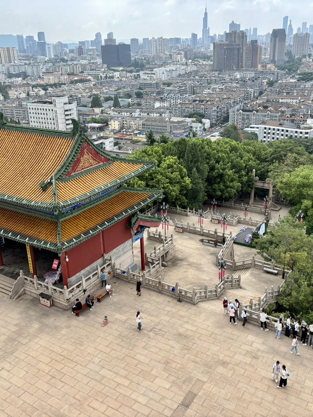 🇨🇳 Nanjing, China (August 2 - August 6) 🇨🇳 🕍 Yuejiang Tower 🕍 🕍 Operating Hours 👉🏻 08:00~17:30 🕍 Yuejiang Tower is located at the summit of Lion Mountain, on the southern bank of the Yangtze River. The city's moat surrounds Lion Mountain. The tower is a Ming Dynasty-style structure, featuring red pillars and a roof covered with golden glazed tiles. While ascending Yuejiang Tower, visitors can enjoy the expansive view of the Yangtze River and overlook the Nanjing Yangtze River Bridge. The sunset view from this spot is particularly stunning. 🕍 Recognized as one of the Four Great Towers of Southern China, Yuejiang Tower is also designated as a national AAAA-level tourist attraction. 🕍 Escalator and elevator fees are paid on-site. It seems that QR codes are not exchanged for entry tickets. 🕍 Exiting through the west gate allows visitors to walk along the city wall. 🕍 Tickets are priced at 10,600 KRW for adults and seniors, while entry is free for those aged 70 and above. Tickets for entry between 08:00~11:00 have been purchased. 🕍 Visitors can walk up to Yuejiang Tower or use escalators at various points along the way. The escalator fee is 10 RMB.