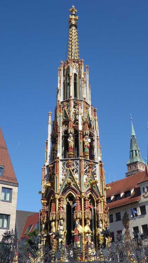 Stepping into the old town square of Nuremberg, the first thing to catch your eye is the vibrant and ornate Schöner Brunnen. This 19-meter-tall Gothic fountain resembles a colorful spire, adorned with intricate gold, red, and green decorations that leave visitors in awe. Each tier is carved with mythical figures, philosophers, and biblical scenes, encapsulating the spiritual history of Europe. Travelers gather around the iron fence to spin the famous 'Golden Ring,' wishing for luck and happiness. Under the sunlight, the sparkling fountain water brings a smile to everyone's face. On the other side of the square stands the solemn Frauenkirche, its red brick façade and spired bell tower striking against the blue sky. Every hour, the church's 'mechanical clock figures' perform, reenacting the coronation ceremony of the Holy Roman Emperor, drawing crowds to the square. Inside the church, light filters through stained glass, casting colorful patterns on the stone columns and altar, creating an atmosphere both reverent and gentle, encouraging visitors to slow their pace. From the vibrant Schöner Brunnen to the solemn Frauenkirche, this square seamlessly blends faith and daily life, liveliness and tranquility. Sitting at the edge of the square with a cup of coffee, watching the people and pigeons pass by, time here doesn't flow—it glows softly. 🌟 'History is not just frozen in architecture but in the gentle moment when sunlight graces the stone bricks.'