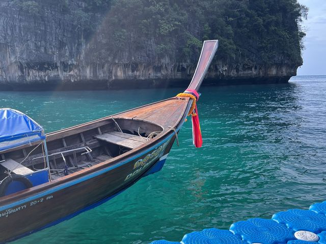 #LetYourHeartGoToTheSea Everyone, just coming to the boat and docking at Ao Maya Pier, without even walking into the park, the sea is already beautiful. I'm dead. I came in a hurry in the morning because the sun is not beautiful at noon. I haven't even been here yet and I'm already taking pictures nonstop. There are many people at the pier. The sea is beautiful and emerald green. When there is no COVID-19, there are not many tourists. The sea is like a vacation. To come to Ao Maya, you have to book through the app. Let it come in gradually. Ao Maya Pier location