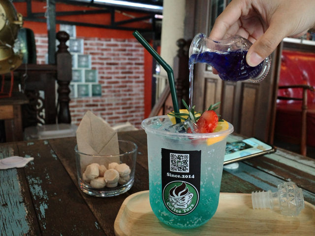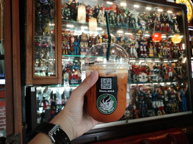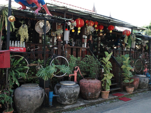 This is a shop with a huge collection of antiques and collectibles. It's a cafe in Bang Nam Market. I'd love to give it a try. The owner is so lovely, and I'd like to share my impression of Baker's House Coffee and Bakery with you. The most impressive thing was the weather, which was so hot. The owner brought me wet wipes that had been refrigerated until they were incredibly cold. It was a small gesture, but I really enjoyed it.