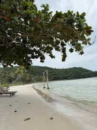 Let’s talk Phu Quoc Island, Vietnam – and why Sao Beach totally blew me away 🏝️. Its powdery white sand and turquoise waters backed by lush green hills? Actual paradise vibes. Even on cloudy days, there’s something soothing about the scene (think dramatic skies, coconut trees swaying in the breeze, and that endless stretch of calm sea 🌧️🌴). Must-See Place: Sao Beach Address: Phu Quoc, Kien Giang, Vietnam Hours: Always open, all year round What I Learned: - Even when it’s cloudy or rainy, Sao Beach stays gorgeous. Bring a light rain jacket just in case – showers pass quickly, and you’ll appreciate the warm mist on your face! - The sand is unreal – super soft, not overcrowded even in peak season. - Take a stroll towards the rocky ends of the beach: there are fewer people, quieter vibes, and some epic photo ops with sea views and green hills. - Look out for local coconut cart vendors along the boardwalk for the freshest coconut water you’ll ever taste. Getting Here: From Duong Dong (main town), grab a taxi or motorbike (`~40 minutes, easy roads`). No entrance fee! Food Fix: Beachside shacks serve up grilled seafood, banh mi, and ice-cold drinks. I recommend ordering fresh calamari with rice and watching the waves roll in – unbeatable. Pro Tips: SPF is a must, even through clouds! Bring some cash (small bills) for snacks and sun lounger rentals. #hellohalloween #phuquoc #saobeach #vietnamescape #beachlife #naturefix