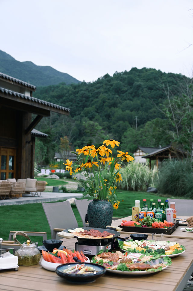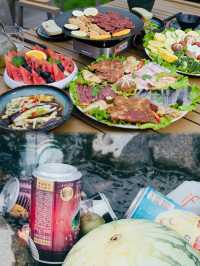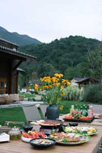 The highway from Mianyang to Pingwu is open, so I couldn't wait to take a soul journey. A friend stayed here before, so I chose this homestay again this time. Unfortunately, it was cloudy when I came, but it did not affect the ambiance of the homestay at all. Navigation address: Pingwu Gaocun Township Lengjiaheba (near Laohekou Nature Reserve) Yiman Gaocun Homestay Recommended reasons: 1. The hotel is built with the architectural concept of Sichuan Western residential houses. The design of the original wood style is very close to nature and integrates with nature, giving a sense of seclusion in a secret place. 2. The privacy is excellent, equipped with an independent private hot spring. You can take a warm medicinal bath at night. 3. Ordered a light mushroom soup pot for the kids. The soup base is very rich, and the chicken is raised by local farmers. It's super delicious, highly recommended 👍. 4. I like their small vegetable garden. You can let the kids pick vegetables and fruits by themselves. The housekeeper said that the owner planted many fruit trees, with different fruits in each season (peaches, plums, pomegranates, sugar oranges, etc.), satisfying all my beautiful memories of my hometown. 5. The aunt at the homestay is like an old friend, always smiling, showing us around, and introducing the room facilities one by one. This service deserves full marks. 6. Because it's by the river, you can put fruits and drinks in the river for natural ice-cooling effect, which is simply a bonus. 👉 Introducing our room, we booked the 1099 one with a garden + a whole granite private hot spring pool. In the evening, taking the kids to soak in the private hot spring made them very happy, relieving the fatigue of the whole day. The room we stayed in is called: Yunman. The name is so romantic, and the bed is soft, like sleeping in the clouds, very comfortable. Woke up naturally in the morning, and breakfast was already prepared for us. In the afternoon, there was a barbecue set, and in the evening, there was a goodnight sweet soup. The owner also gave each room a gift box of three flavors of 'vegetable' house. This cost performance is really good‼️ Thankful for such a place in the busy life, I really like it, and I will come again next time.