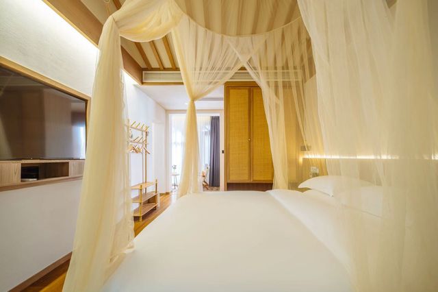 On this trip to Qingyang, we stayed at Yanxi Lake Bay Holiday Villa Shanshui Courtyard, which is a hidden gem around Jiuhua Mountain! 💫 This designer boutique hotel is tailor-made for "escaping the city"—floor-to-ceiling windows face the green mountains, and the smart toilet comes with a foot soaking basin. 🌿 Living inside a mountain landscape painting • The room features a minimalist natural wood style, with two beds facing the entire floor-to-ceiling window. You can see clouds wrapping around the mountain waist as soon as you open your eyes in the morning (remember to set your alarm to catch the sunrise light and shadows!) • The small round table in the sofa area is perfect for tea and daydreaming. Outside the window are bamboo groves and rapeseed flower fields. Visiting in April gives you the feeling of "verdant mountains and waters." • The bathroom is equipped with a smart toilet and an extra-large bathtub. After a day of activities, soaking in a rose bath is super relaxing. 🏞️ Super laid-back activities nearby • A 5-minute walk to Yanxi Lake, where the lakeside boardwalk at dusk is very healing. Remember to bring bread to feed the fish (the koi are very plump). • A 10-minute drive to Jiuhua Mountain Visitor Center, where shuttle buses go directly to the Tiantai Scenic Area. 🍲 A must for foodies • You can book a lakeside barbecue in the evening. The housekeeper will help start the fire, and the sparklers you bring make for magical photos. 💡 Bonus service list • Free high-speed rail station pick-up and drop-off (book one day in advance) • Infinity pool open in summer, remember to bring bright-colored swimwear ⚠️ Notes • Large temperature difference in the mountains, bring a light jacket in April-May • Some room types have bathrooms where the wet and dry areas are not clearly separated The biggest surprise this time was the tranquility of staying overnight in the mountains—no car noise, only frog sounds, and when you turn off the lights, you can see the outline of the Milky Way.