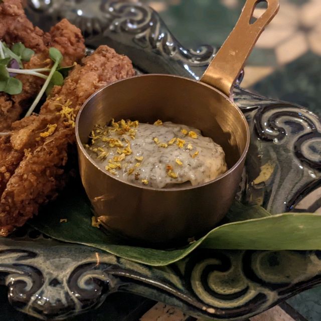 ⭐Fooling around 📍G/F, 8 South Lane, Western District ⬇️⬇️⬇️ There are many beautiful western restaurants in Western, but this one is really not only super beautiful, but also not expensive and has delicious food! 😍 Super super recommended! The best thing is that it runs ancient house style, super feel, super beautiful decoration, high enough ceiling, good enough space, the environment gives me a very comfortable feeling 😝 The price is actually not expensive at all, enough portions, high quality, with the whole environment and hotel-grade service, value for money is really super high! 🤩 Crab Paste Crabmeat Stew ($178) A super delicious rice! I would highly recommend everyone to order this. 🤤 The top is full of crab meat and crab paste. Slow Cooked Spanish Pork Ribs (half $198) The Ribs sauce is well adjusted and we love it, slow cooking does not make it easy to burn, but can cook the meat very tender. 👏🏻The fire is well controlled👍🏻 1000 Cups of Not Drunk Fried Single Bone Chicken Wings ($88) The alcohol taste is not very out, but it really feels like drinking alcohol😂 It will have a little drunk feeling, quite cool. It is fried until the skin is very crispy, there is no thick flour feeling, and the meat is very smooth and Juicy!🤤 长相思($85) This white wine is super good, very fragrant, with a little sour taste, drinking wine like to get a little drunk friends must like! 😁 #foodie #HongKongFood #Food #hkfoodie #West PointFood